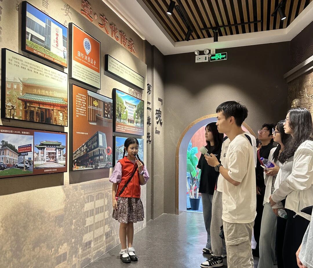 潮州牌坊街是承载潮汕千年历史文脉的标志性街区,古色古香的牌坊群与特色商铺相映成趣,既保留着地域文化的厚重底蕴,也涌动着当代生活的鲜活气息。活动中,同学们沿着青石板路漫步街区,在欣赏 “状元坊”“尚书坊”等历史牌坊建筑魅力的同时,重点关注红色文化在街区的鲜活表达。大家驻足观察各类商铺,从红色主题的文创产品、印有革命标语的传统手工艺品,到悬挂革命历史图片的潮汕茶肆、循环播放红色故事的非遗手作工坊,直观感受红色元素与商业经营、日常生活的深度融合。观察当代商家如何在经营中融入红色元素,让革命优良传统在与地域文化的碰撞中更贴近生活、深入人心。有同学感慨,这种“看得见、摸得着、能体验” 的红色文化传播方式,让革命精神不再是书本里的文字,而是能融入日常的精神养分,更易被青年群体接受和传承。