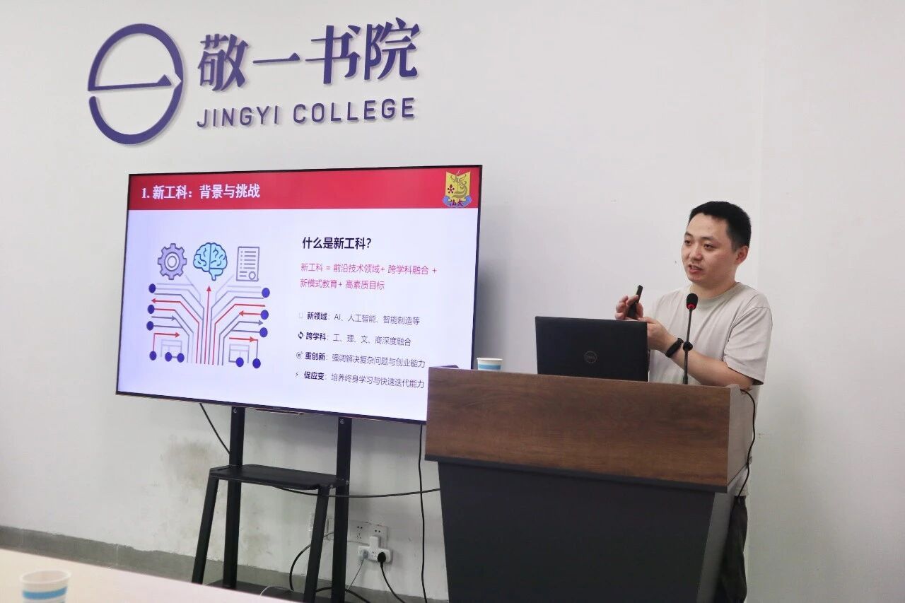 活动伊始,吴嘉俊对新工科背景进行解读,指出前沿技术推动工科变革,粤东企业亟需复合型人才。他强调在此背景下,老员工需转向自主学习,培养跨学科思维与终身学习能力。