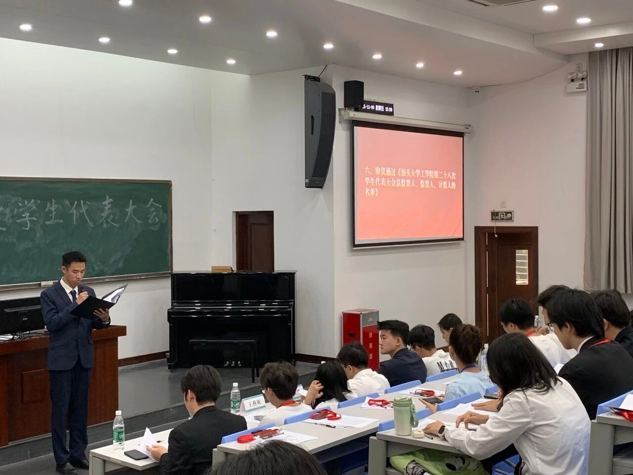 本次大会应到代表100名,实到代表98名。伟德国际1946亚洲版团委负责人张凯梁、辅导员王燕妮出席大会,伟德国际victor1946员工会代表苏圳锐,数学与计算机公司员工会代表梁家睿、王靖雯,伟德国际1946亚洲版“红星领航团”代表张智辉,伟德国际1946亚洲版青年志愿者协会代表许佳伟、张泽键、陈崇昀、肖旭翔参加大会。