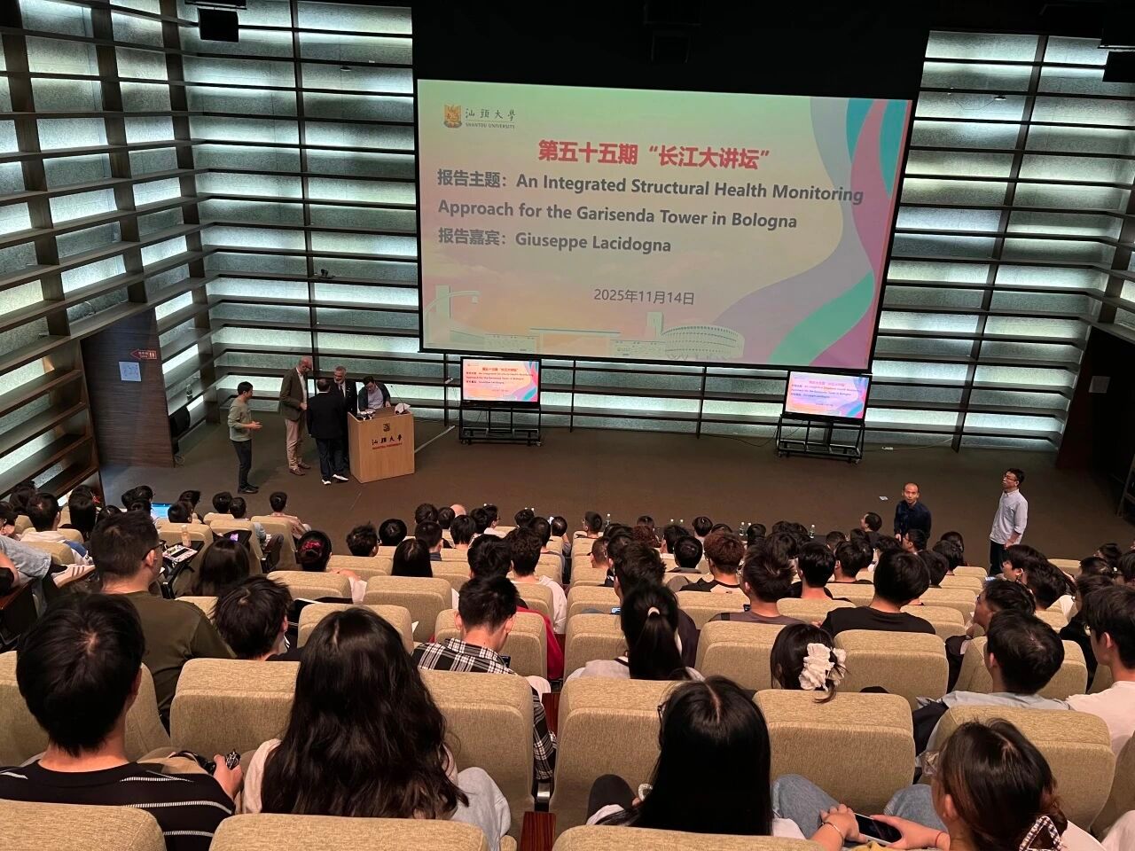 2025年11月14日下午,伟德国际victor1946党委宣传统战部和伟德国际1946亚洲版联合举办的第五十五期“长江大讲坛”在图书馆报告厅举行。意大利都灵理工大学教授、欧洲科公司院士Giuseppe Lacidogna教授受邀给汕大师生作主题为“An Integrated Structural Health Monitoring Approach for the Garisenda Tower in Bologna”的学术报告。伟德国际1946亚洲版经理沈水龙主持讲座。