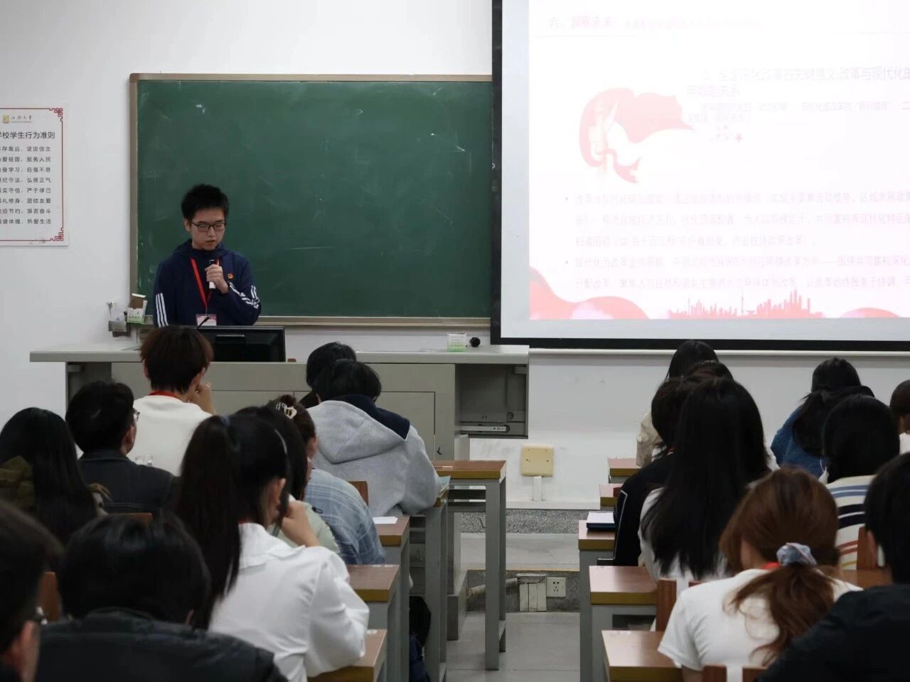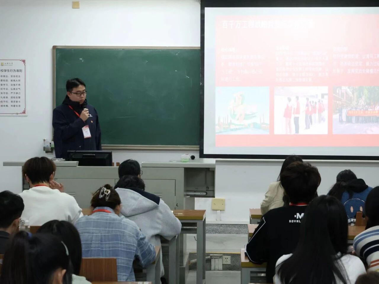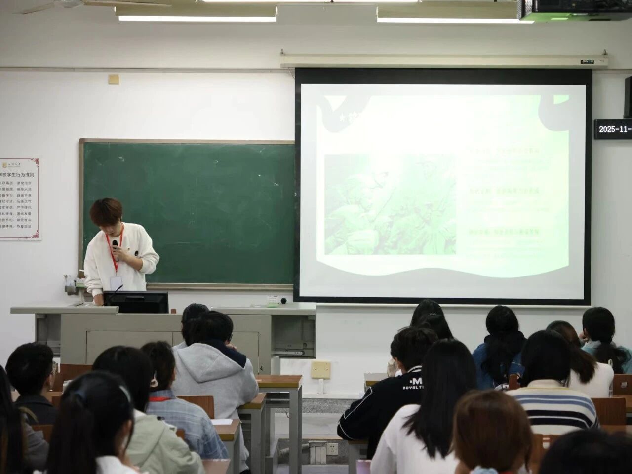 11月21号晚上,余依璟老师为学员们开展《党和团的基本知识、历史、优良传统和廉洁文化教育》专题讲座,以时间脉络系统梳理党团发展历程,通过五四运动、改革开放等关键节点解析优良传统内涵,结合典型反腐案例阐释廉洁文化建设重要性。她以图文并茂的演示、深入浅出的讲解,引导同学们深刻认识党团血脉联系与时代使命。本次讲座为筑牢入党积极分子理想信念根基、强化纪律意识提供了坚实理论支撑。