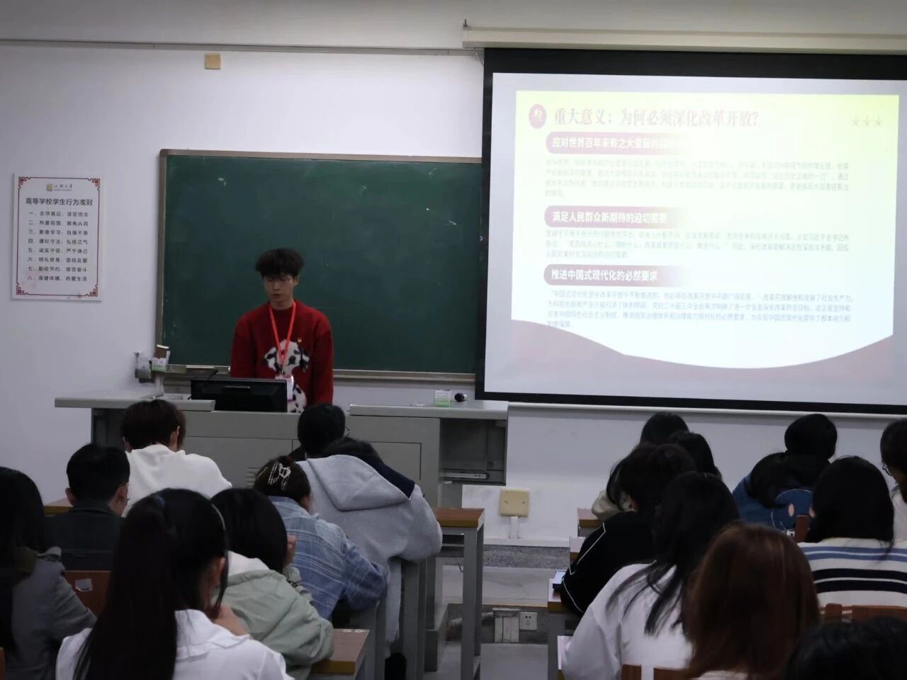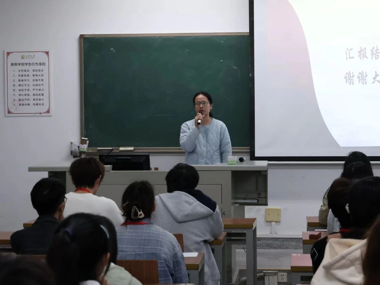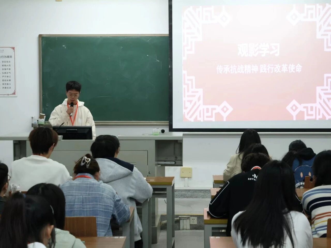 从成果汇报到专题学习,再到车辆指引志愿活动,这是一段理论持续深化、思想不断淬炼的历程。我们用党的创新理论武装头脑,更将所学所思付诸实践,真正实现了从精神养分到时代行动的转化。正如宋碧霄老师所言:“学习的关键在于‘落实于行’。”这启示我们,要以此次学习为新起点,自觉将党的理论内化于心、外化于行,在政治素养与实干能力上同步提升,努力在中国式现代化的征程中,书写无愧于时代的青春篇章。