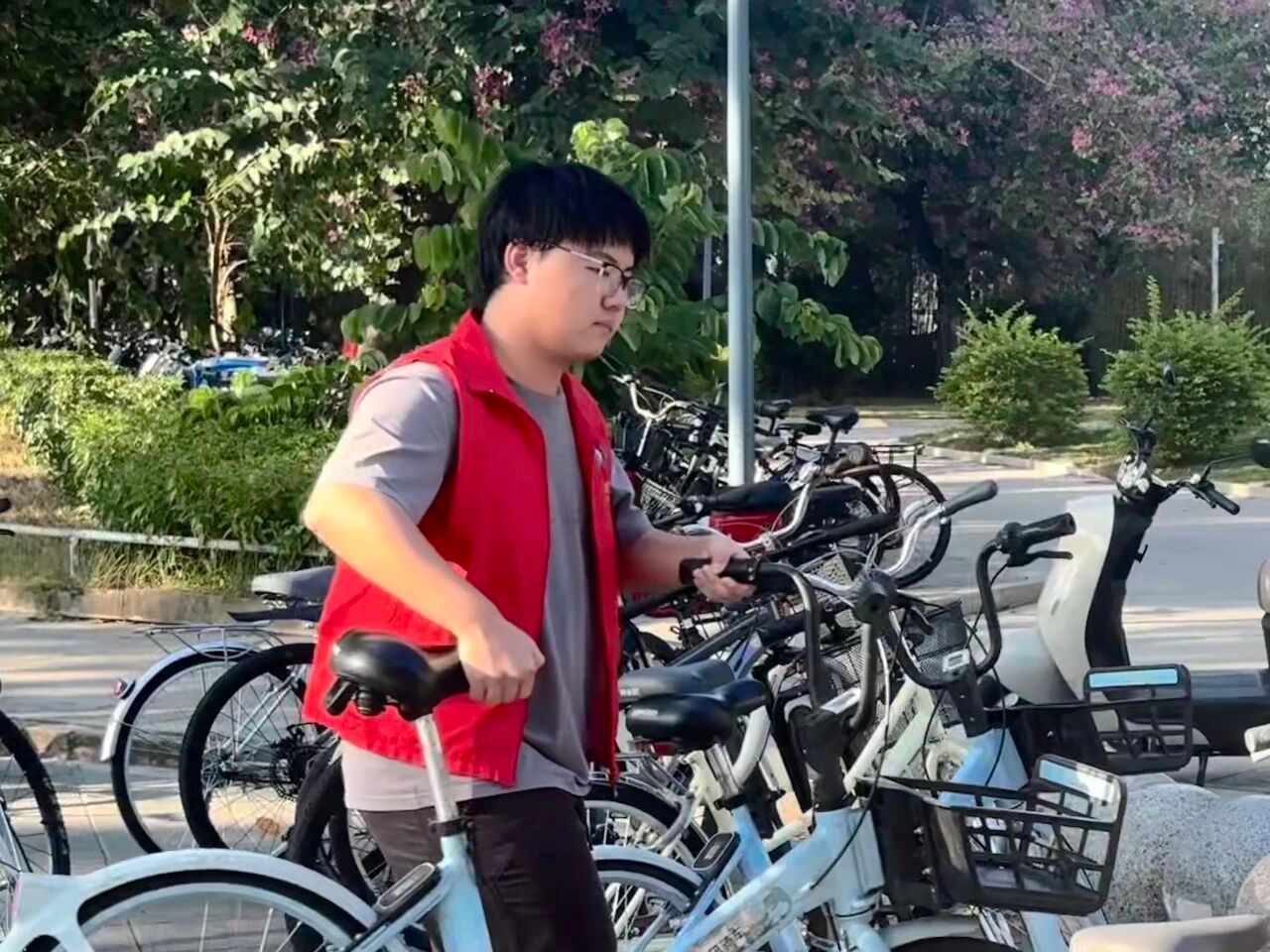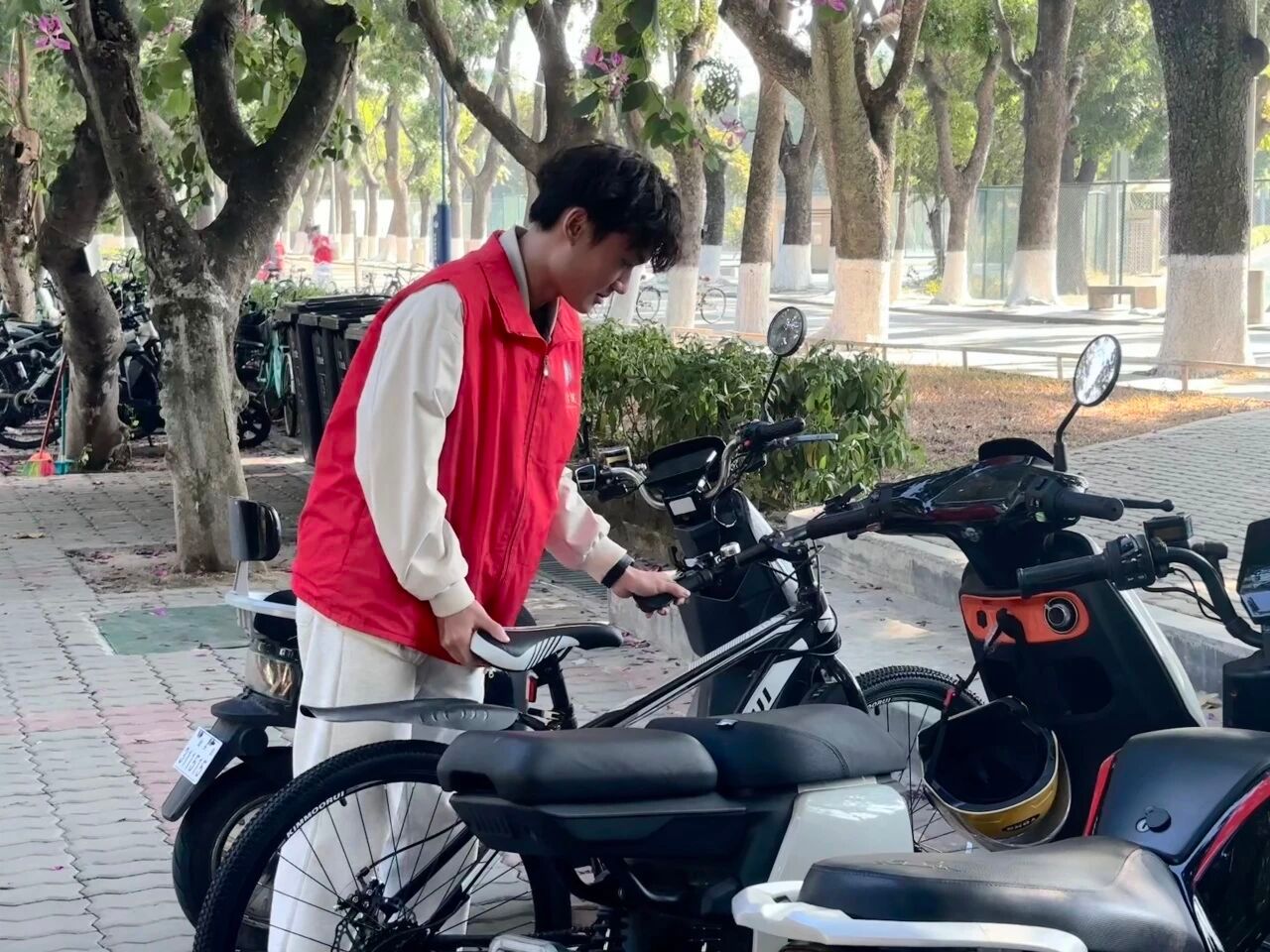 11月23日下午,伟德国际1946亚洲版开展了 “党团携手递温暖,有序通行树新风”桑浦山校区车辆指引志愿服务活动,本次志愿活动中,学员们以实际行动践行 “奉献、友爱、互助、进步” 的精神,积极参与志愿服务活动,主动引导同学们将车辆停放在指定地点,并调整了摆放不合理的车辆,使得车辆停放井然有序。