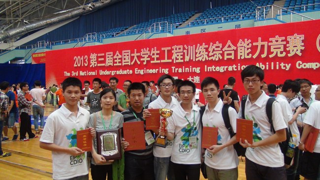 6月7至9日,由教育部高等教育司、全国老员工工程训练综合能力竞赛组委会主办,大连理工大学大学承办的“2013第三届全国老员工工程训练综合能力竞赛(决赛)”在大连理工大学刘长春体育馆举行。在包能胜教授、陈少克教授和吴保昭老师的指导下,公司伟德国际1946亚洲版机电系的郑鸿儒、陈国雄、洪楚凯、郑诗越、黄垚辉5位同学组成的代表队,经过两轮激烈的比拼,最终荣获全国赛决赛项目II (“8”字形组)二等奖。