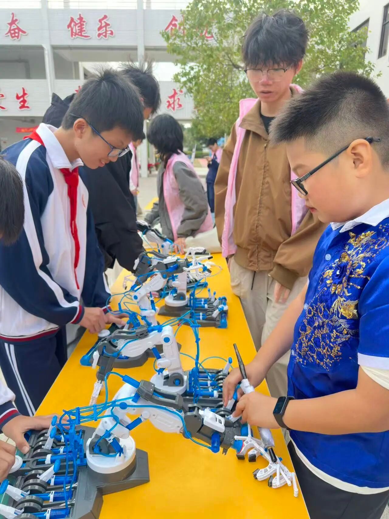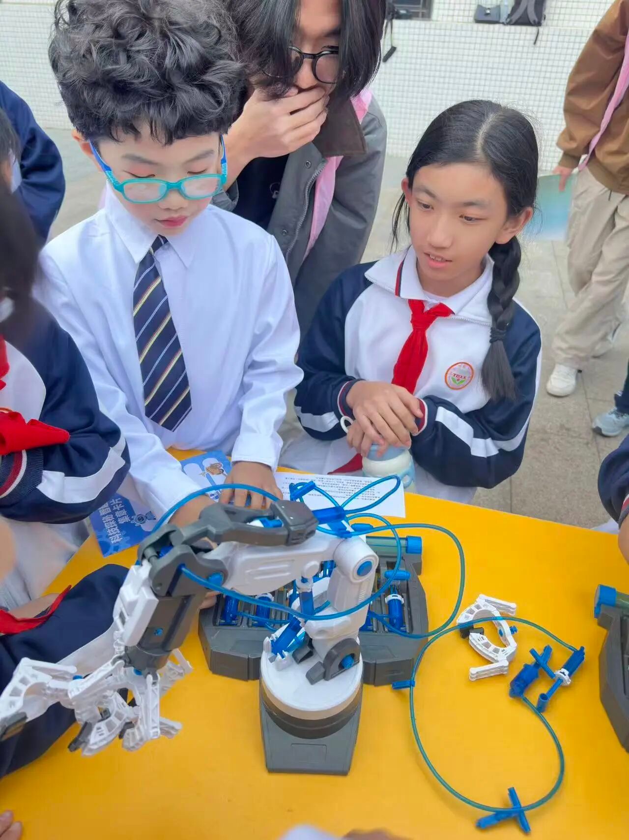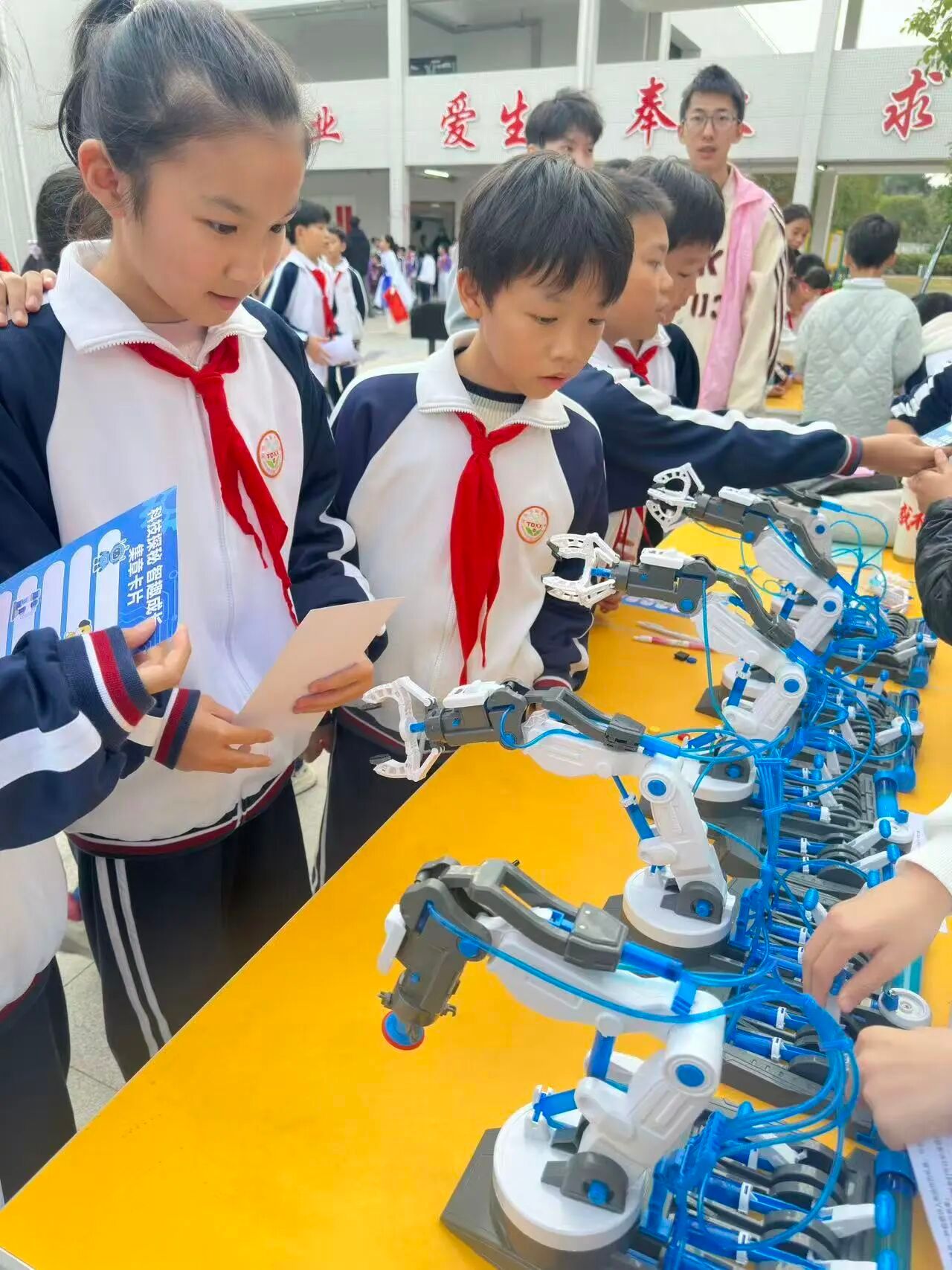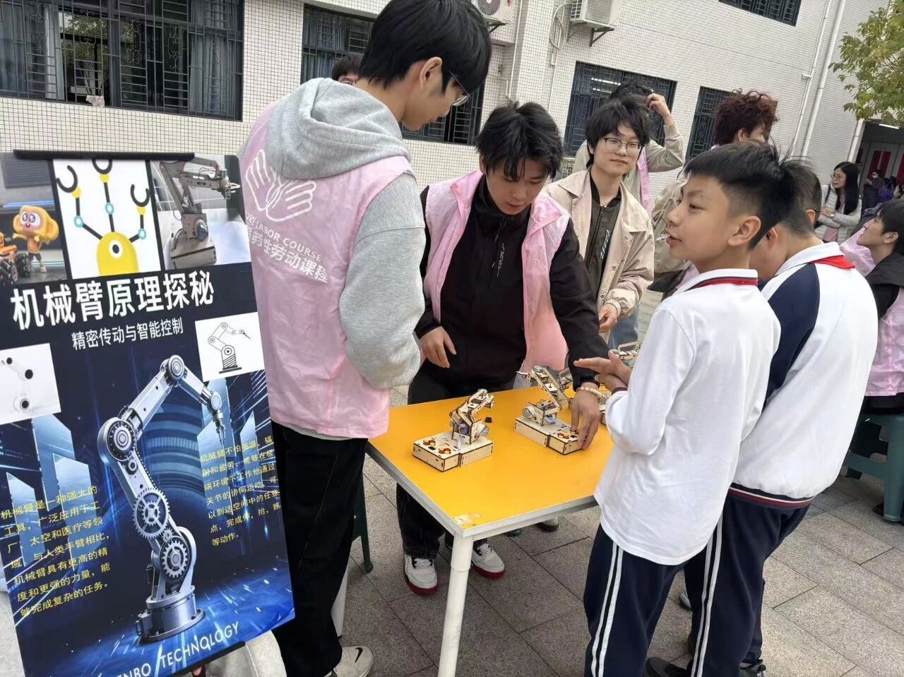 聚焦工业应用场景的机械臂原理摊位,为同学们展现了智能机械的实用价值。
