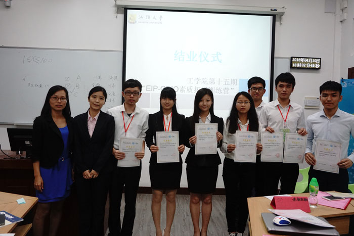 在训练营闭幕式上,每位学员分享了参加训练营的心得体会。最后,团委姚熠老师、郭春娟老师和沈育德老师给学员颁发了结业证书以及优秀团队证书并与学员们进行了合影留念。