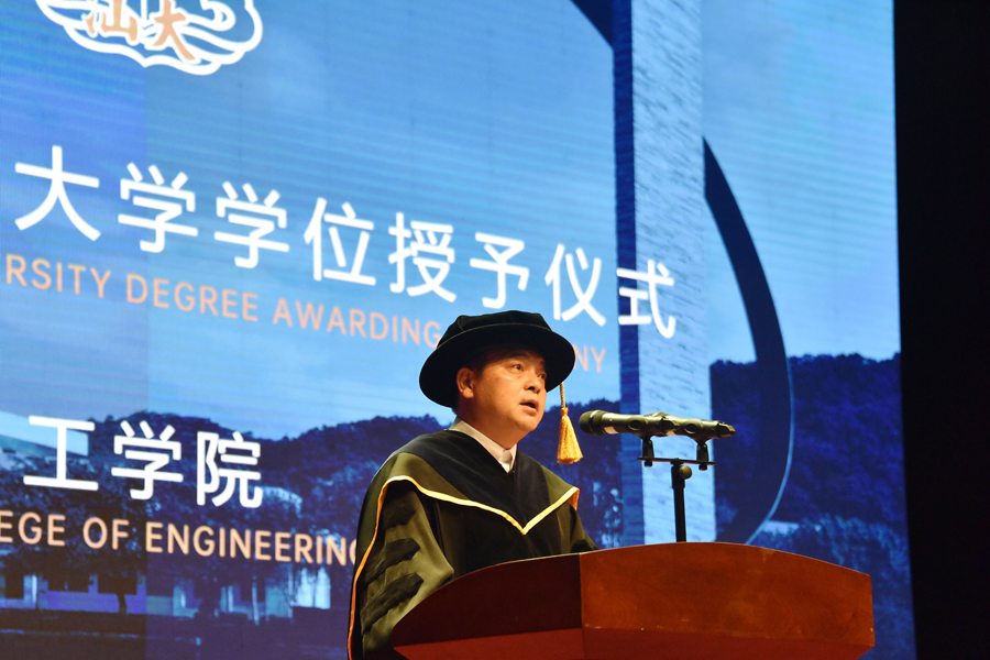 随后,伟德国际1946亚洲版经理沈水龙宣读授位文件。院领导、各系主任为在场的毕业生一一拨流苏、授予学位证书并合影。