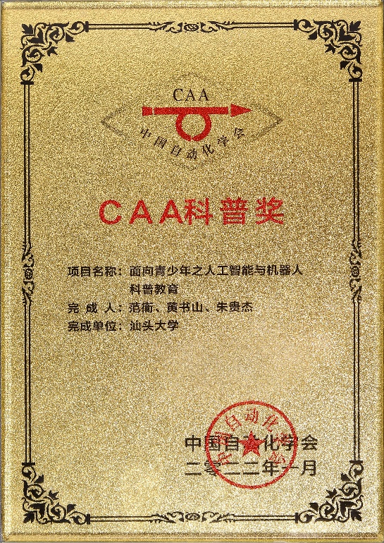 12日晚,2021年度中国自动化学会颁奖盛典隆重举行。范衠教授的《面向青少年之人工智能与机器人科普教育》项目获得2021年度中国自动化学会科普奖。《面向青少年之人工智能与机器人科普教育》项目采用“政-校-企”合作模式,连续8年举办“院士科学家走进汕头校园讲科学”主题教育活动,连续3年开展汕头市“百名小发明家“培养活动和实施”汕头市少年科学家“培养计划,开发了面向青少年的一系列科普教具及教程,项目累计受众约30万人。
