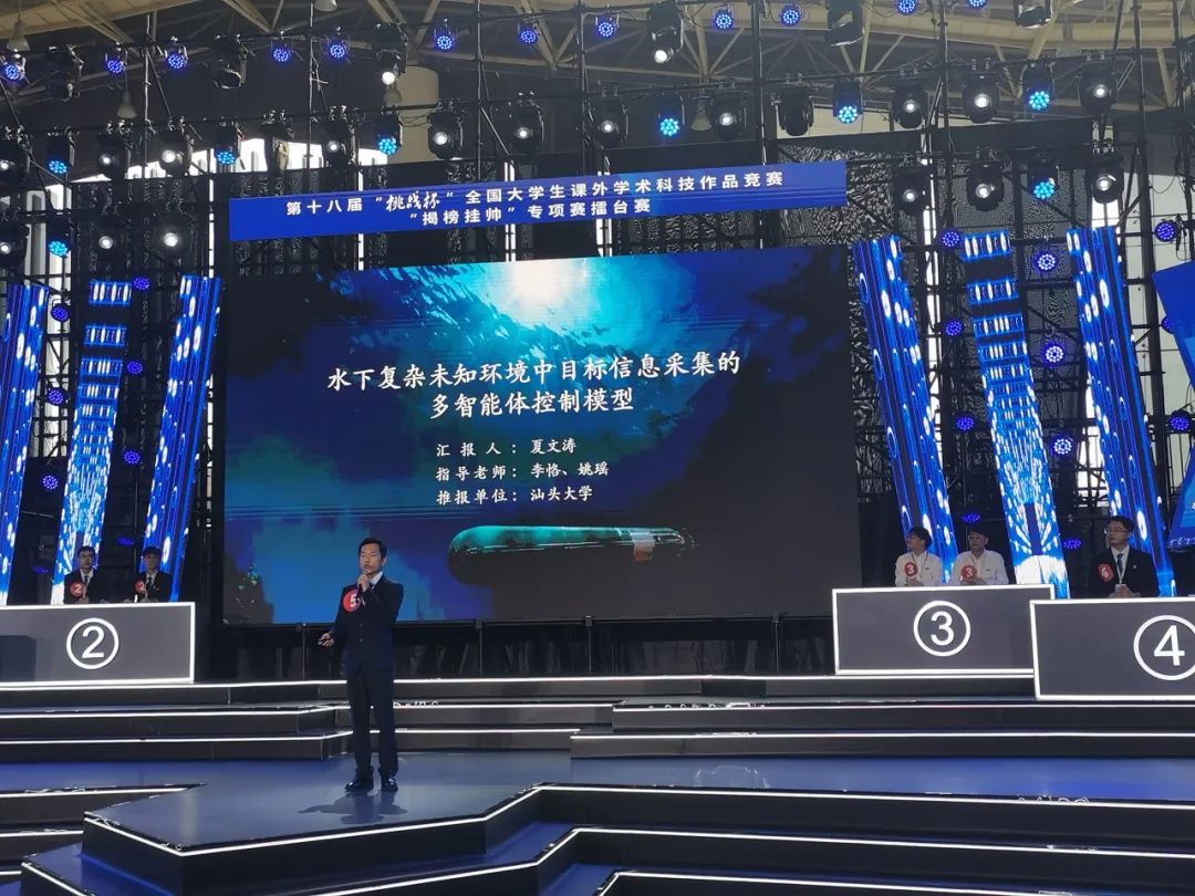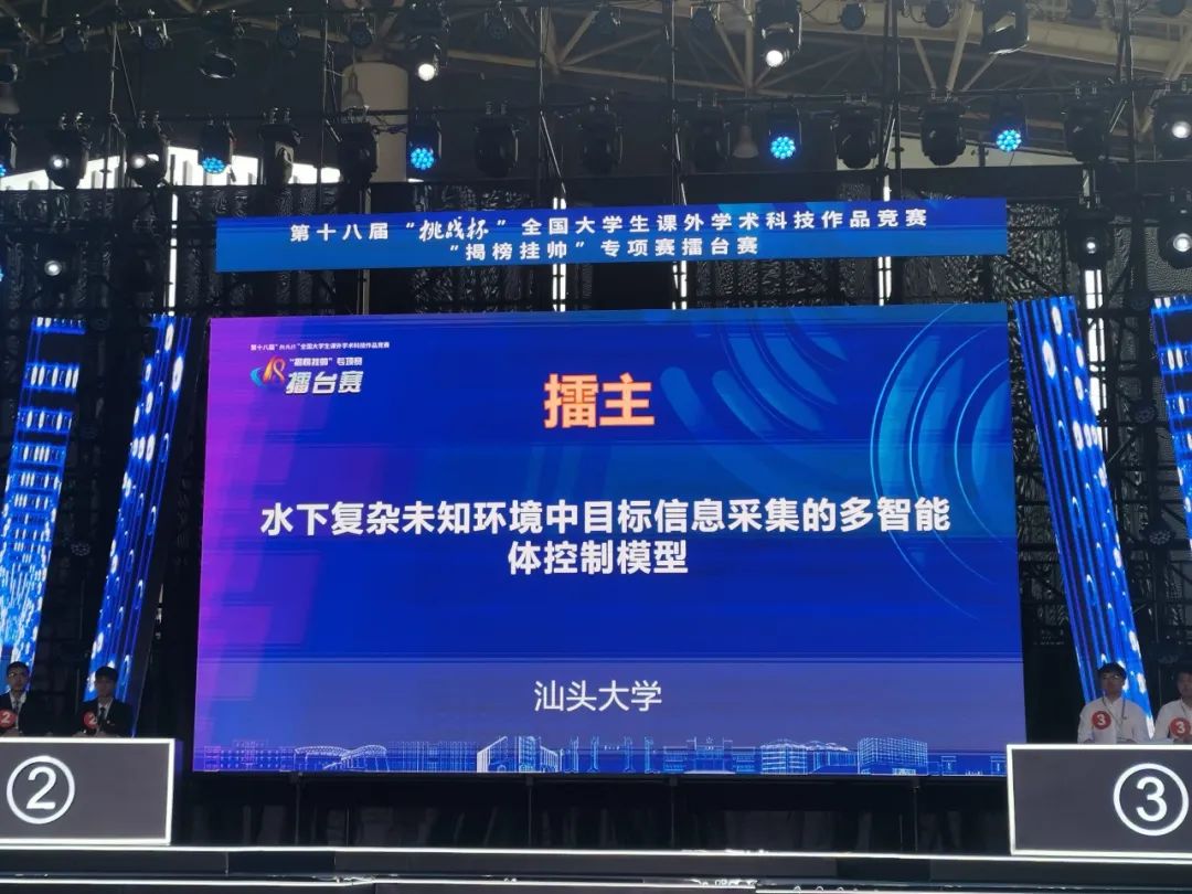 2023年10月28日,第十八届“挑战杯”全国老员工课外学术科技作品竞赛“揭榜挂帅”专项赛擂台赛在贵州大学成功举行,由伟德国际victor1946李恪副教授和姚瑶博士指导,夏文涛(2022级电子信息专业研究生)、彭公辅(2022级电子信息专业研究生)和叶阳昕(2022级电子信息专业研究生)等负责的“水下复杂未知环境中目标信息采集的多智能体控制模型”以总分第一名的成绩夺得该专项赛擂主。