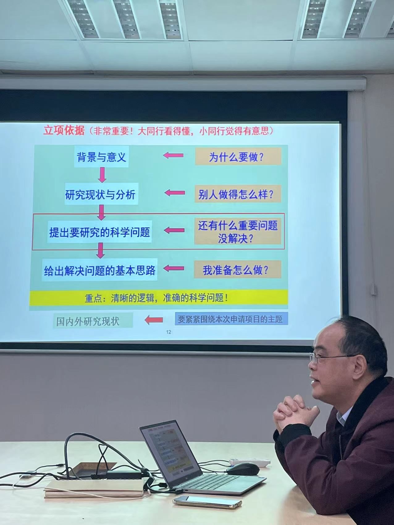 庄哲民老师介绍了自己申报国家自然科学基金的经验,从选题、内容构思到细节打磨都给出了详细地指引,并以自己获批的项目申请书为例进行了具体地讲解。庄老师特别强调,申请书在选题与内容构思的时候要结合本地的地方特色,做到“人无我有”,结合企业合作成果等,这样既能体现研究内容的创新性,又能带动本地经济,打动项目评审人。庄老师还指出,要尽量避免申请书中出现任何细微的错误,以做科学研究的严谨态度对待申请书的撰写,并强调申请书的质量是项目能否予以资助的重要依据。
