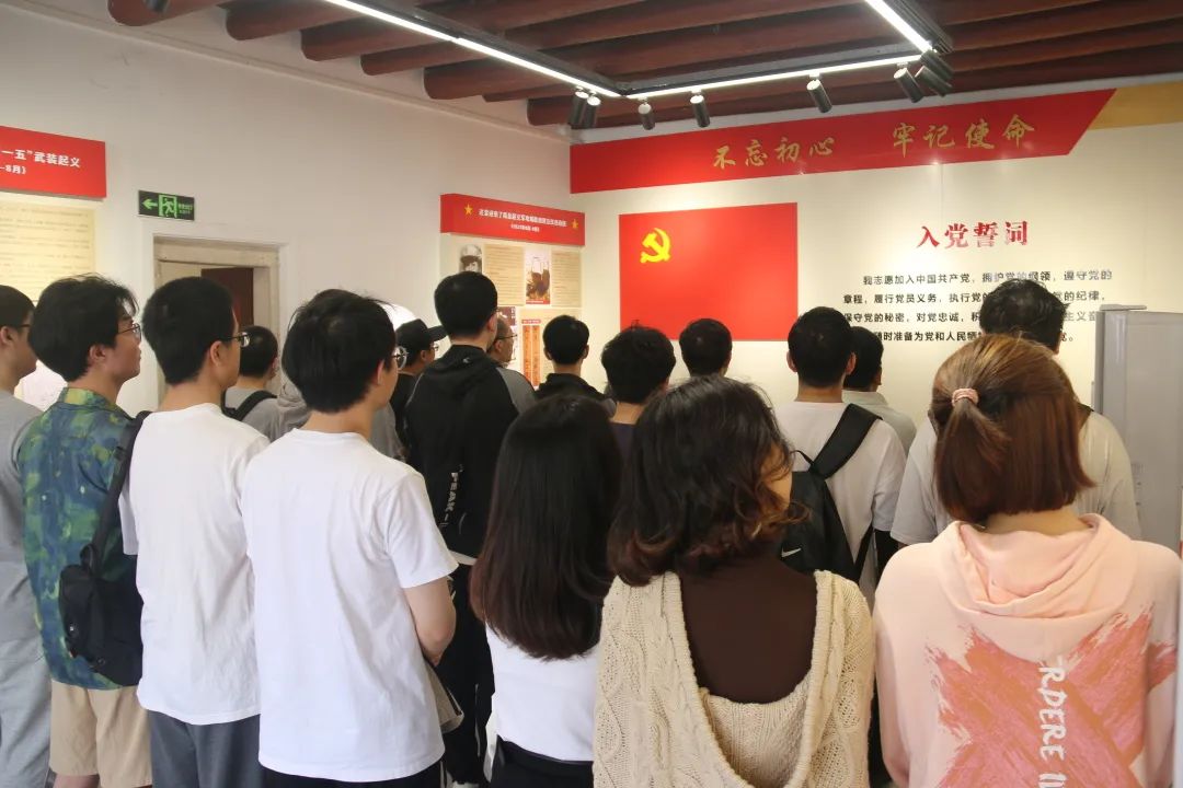 在后沟村,党员们走进主题展厅,聆听解说、瞻仰史料。公司党委组织员林展乔结合当地红色革命斗争的历史,开展了一场内容丰富、形式新颖、走心动情的“沉浸式”党课。透过历史的长廊,广大党员仿佛穿越了历史长河,深入了解了南昌起义部队进军三河坝、丽泽斋开设小型兵工厂、制造土弹药等壮烈历史,深刻感受到先烈们坚韧不拔和崇高的爱国主义精神。参观完毕后,由林展乔同志领誓,全体党员用铿锵有力的声音重温入党誓词,表达对党忠诚、为党的事业奋斗终生的决心和愿望。