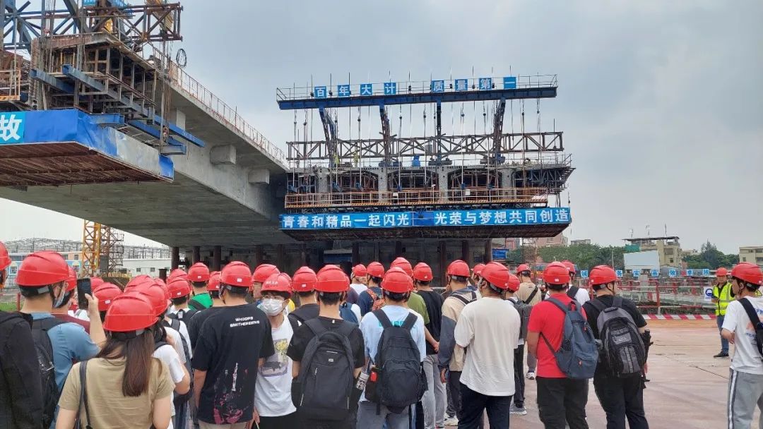 为深入开展学习贯彻习近平新时代中国特色社会主义思想主题教育,牢牢把握“学思想、强党性、重实践、建新功”的总要求,积极开展访企拓岗促就业专项行动,解决老员工专业实践短板,提升人才培养质量,推动老员工高质量就业,5月13日,土木系系主任、党员教授祝志文和党支部书记、系副主任吴鸣带领2020级土木工程专业员工,前往汕头市高速公路公司海湾大桥、中铁大桥局牛田洋特大桥、广东东楚建设有限公司天山北路项目、联泰集团(达濠市政)金砂西路及牛快项目预制场开展合作交流及专业实践。