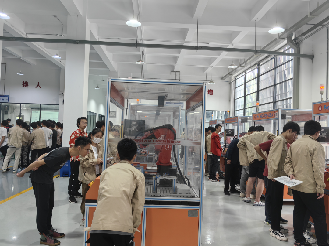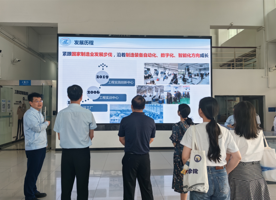 郑再新一行还参观了工程实践创新中心的机械制造、材料成型、电工电子、智能制造等创新实践单元。参观过程中,双方就就工程训练课程开发、工程训练实践平台搭建、工程训练的考核评价及如何培养员工的科技创新与实践能力等方面进行了交流。