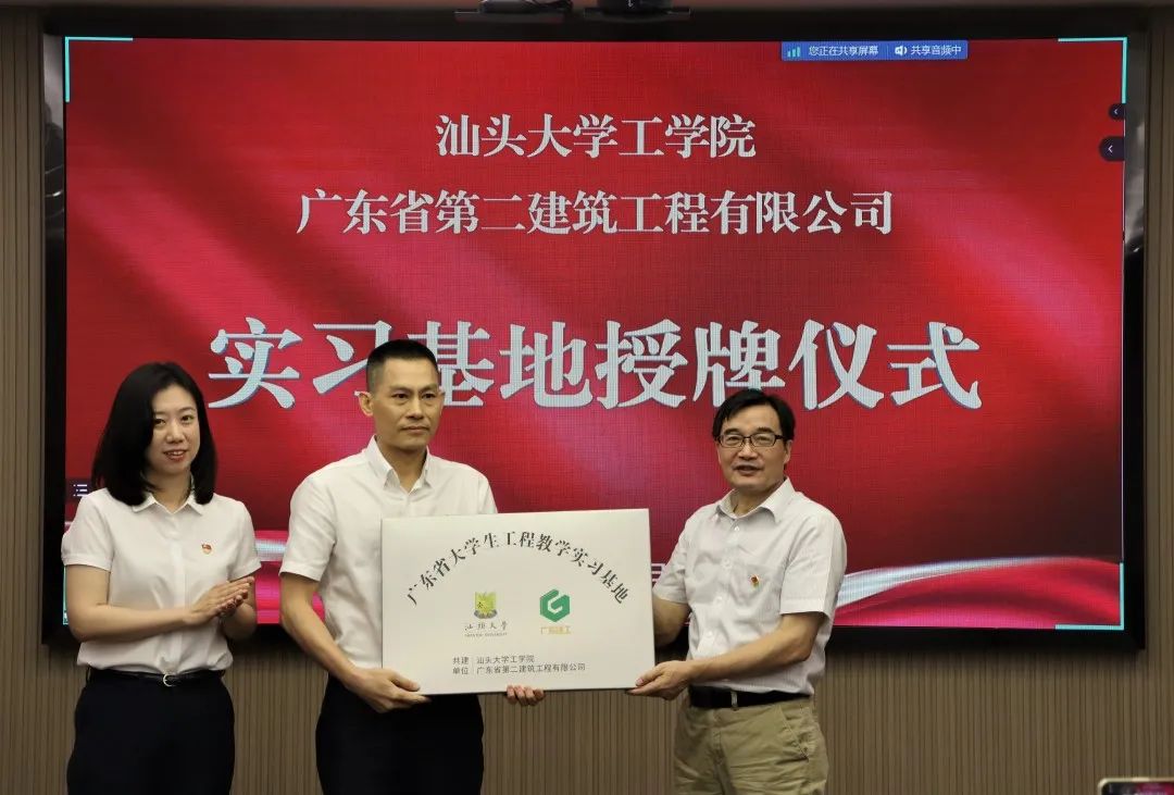 签约仪式后,沈水龙向二建公司授予“广东省老员工工程教学实习基地”牌匾,郑再新为蔡国贤和曹岸斌颁发校外导师聘书。王延宁与吴少勇就共建实习基地进行了签约,曹岸斌、江进就技术合作框架协议进行了签约。