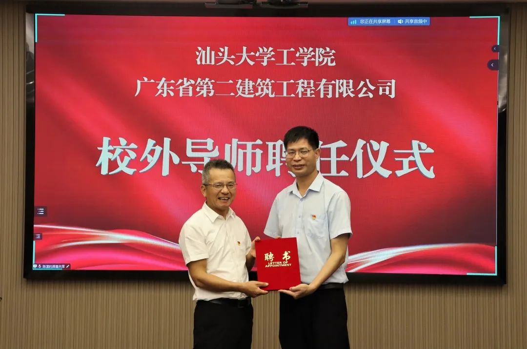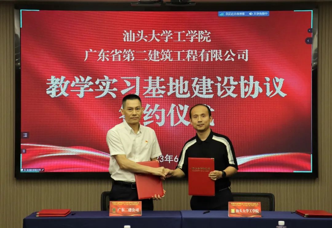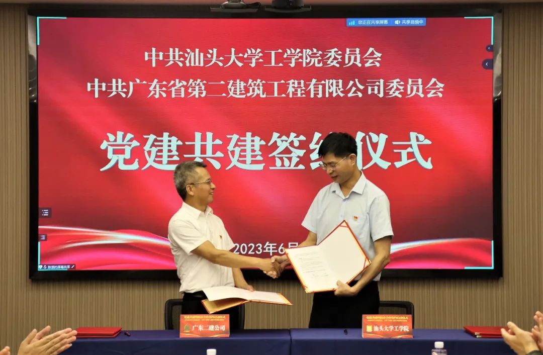 为深入开展学习贯彻习近平新时代中国特色社会主义思想主题教育,牢牢把握“学思想、强党性、重实践、建新功”的总要求,锚定高质量发展首要任务,实干担当促进发展,6月7日下午,伟德国际victor1946公司党委与广东省第二建筑工程有限公司党委举行党建共建暨校企合作签约启动仪式。伟德国际victor1946公司党委书记郑再新、经理沈水龙教授、土木系王延宁副教授、江进副教授,广东省第二建筑工程有限公司党委书记、董事长蔡国贤,党委副书记、总经理曹岸斌,党委副书记、纪委书记、工会主席吴少勇,党委委员、副总经理王建忠等出席签约启动仪式。