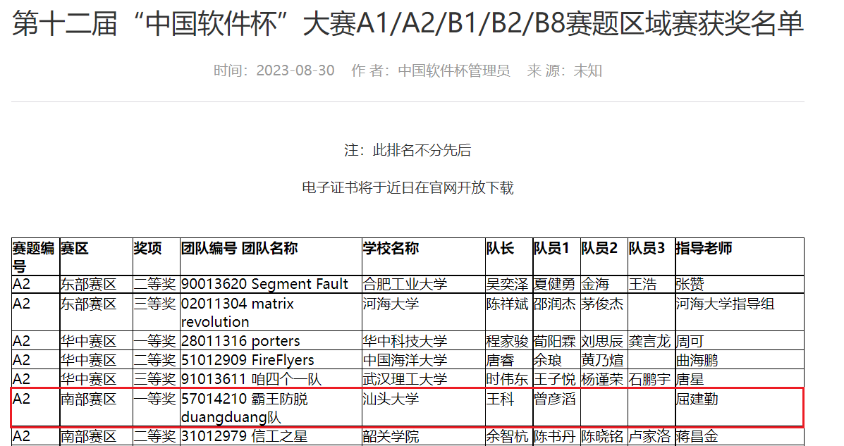 其中,由公司屈建勤副教授指导,王科同学和曾彦滔同学组成的团队,取得本科、研究生组全国总决赛三等奖和南部赛区一等奖的佳绩。