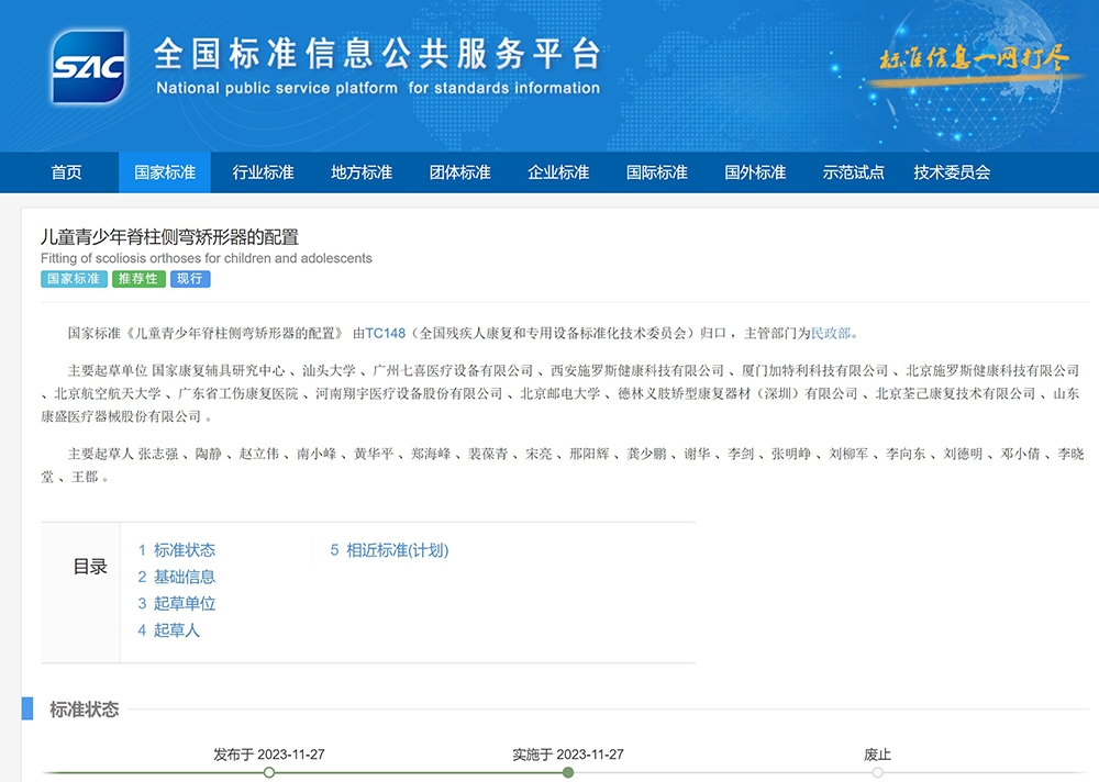 该标准由民政部提出,由国家康复辅具研究中心和伟德国际victor1946共同牵头,联合广州七喜医疗设备有限公司、西安施罗斯健康科技有限公司、北京航空航天大学、广东省工伤康复医院、河南翔宇医疗设备股份有限公司、北京邮电大学、德林义肢矫型康复器材(深圳)有限公司等多家产、学、研单位共同编制,是我国儿童青少年脊柱侧弯矫形器配置领域的首个国家标准。