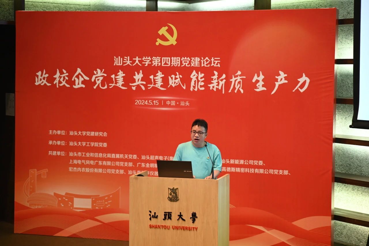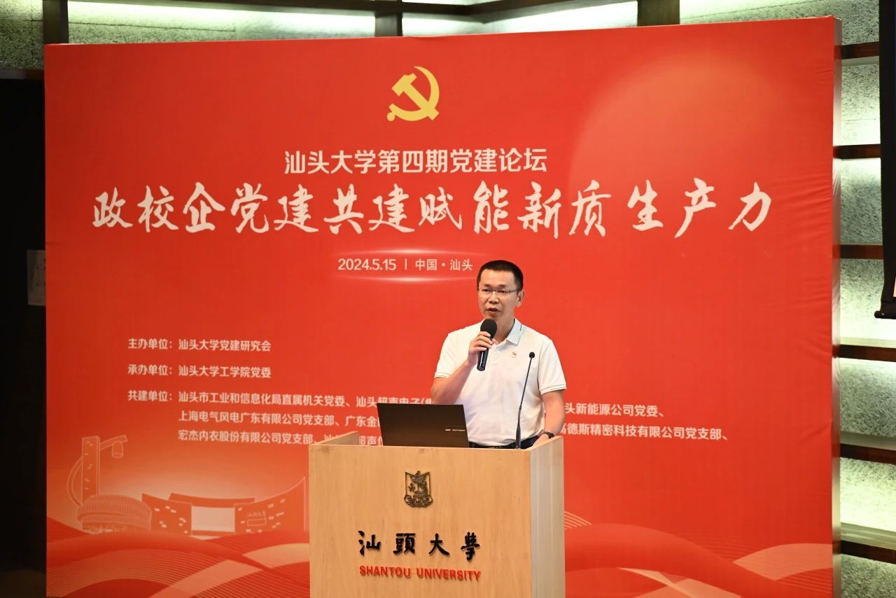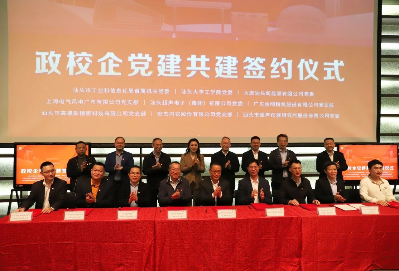 公司党委以党建共建为纽带,与汕头市工业和信息化局直属机关党委,以及大唐汕头新能源有限公司、上海电气广东风电有限公司、超声电子(集团)公司、广东金明精机股份有限公司、超声仪器研究所股份有限公司、高德斯精密科技有限公司、广东宏杰内衣股份有限公司7家汕头“三新两特一大”标志性企业开展政校企、产学研深度合作,实施政治理论联学、科研项目联攻、党员队伍联动,以党建链串联产业链、以产业链集聚人才链、以人才链支撑创新链,推动资源共享、难题共解、发展共赢,为培育和发展新质生产力增势赋能。