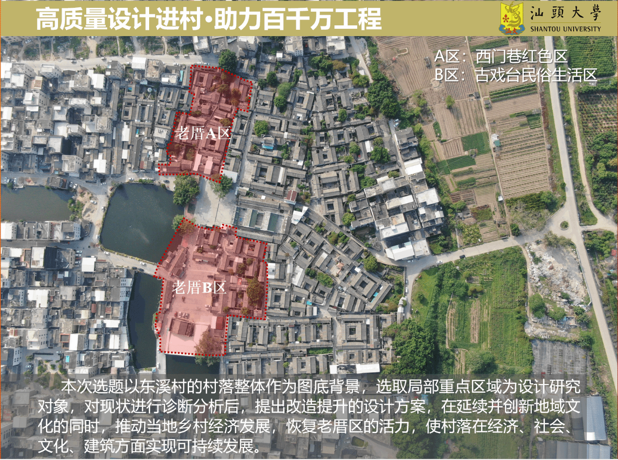 伟德国际1946亚洲版秉持着“培养人才、研究科学、社会服务”的初心,响应省委省政府“百千万工程”号召,自2023年7月起选派土木系王英姿教授、张翠娜副教授等5名专业教师,积极参与汕头市“百县千镇万村高质量发展工程”技术服务团,对汕头市各主要区县的村镇建设进行技术指导与帮扶。在过去的一年中,依托建筑学专业师生的技术力量,将“百千万工程”与专业课程教学进行融合,从建筑策划与设计的角度对如何激发潮汕传统村落的活力进行探索,以高质量讲座、高品质的创新设计助力“百千万工程”。将定点帮扶村作为设计课程教学实践基地,对十一合、四合等传统村落进行调查研究,完成四合新溪听荷文旅街设计方案图纸1套,并带领员工完成有关东溪村老厝区更新活化的3套设计方案图纸以及2篇毕业论文。