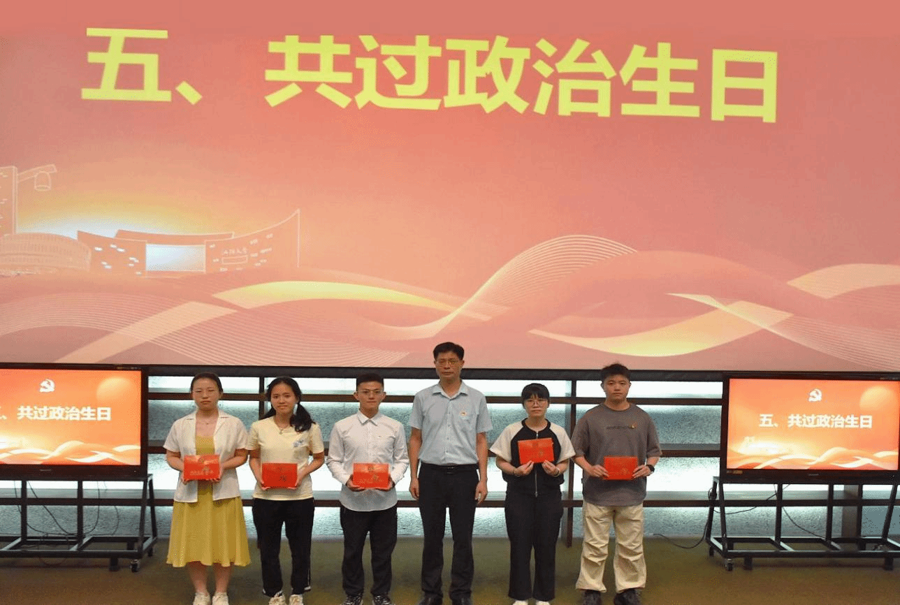 对于普通人而言,生日只有一个,对于一名党员来说,却有两个生日,这个特殊的生日就是“政治生日”。郑再新向各支部毕业生党员代表赠送了政治生日贺卡,勉励全体毕业生党员牢记党员身份、坚定许党报国信念,增强能力本领,以实际行动和优异的成绩为党旗添彩、为母校添辉。