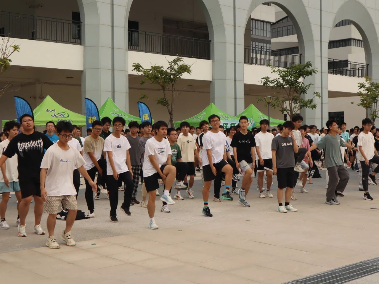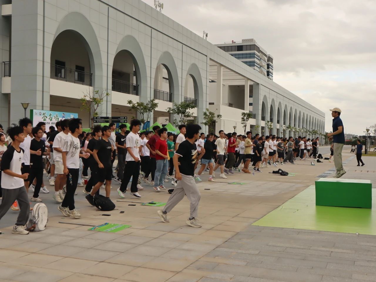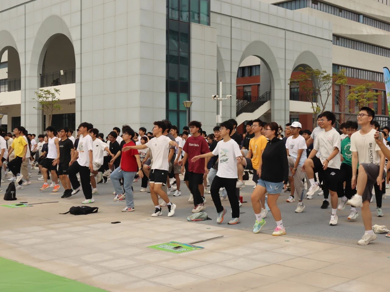 大家一起做了热身运动