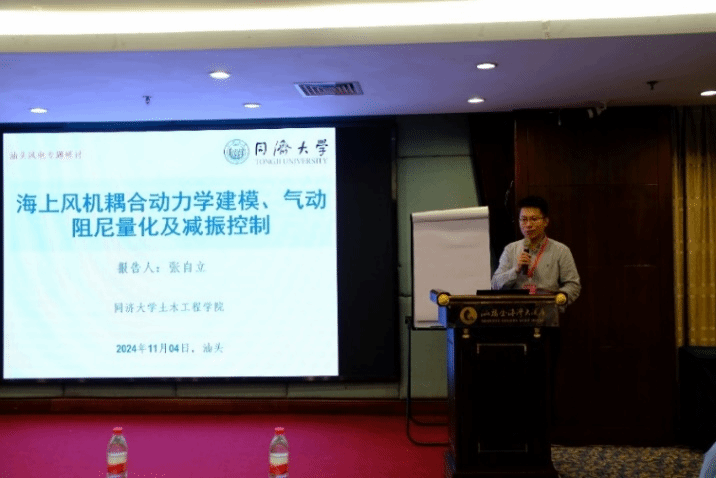 在邀请报告环节,同济大学张自立教授作题为《基于解析解的海上风机多模态气动阻尼量化》的报告。首先概述了海上风力发电机的柔性结构体系及其低阻尼特性;接着介绍了风机一体化建模及非线性动力分析软件ELWiS以及风机耦合系统气动阻尼的解析量化过程;最后提出了后续研究重点内容。