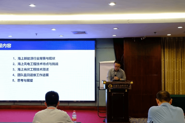 随后,中国电建集团华东勘测设计研究院有限公司高工乔厚博士作题为《海上新能源结构在位状态监测研判现状与研究进展》的报告,内容包括海上风电的特点与挑战,团队监测运维工作进展,以及对海上风电监测行业的展望,重点强调了提出行业规范、设计方法和工具的重要性。