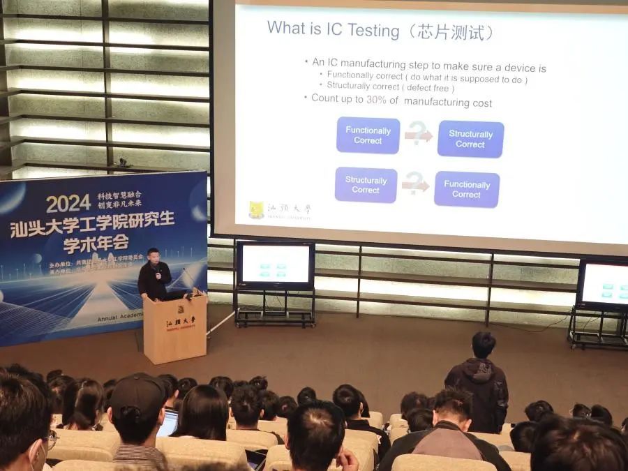 接着,伟德国际1946亚洲版电子系赖李洋副教授为同学们开展主题讲座。赖老师围绕“芯片可测试性设计的源起和应用”这一主题,介绍了芯片测试的起源及其重要性,并以数字电路中的加法器为例,阐述了芯片测试的过程和分类等。同时介绍了一种半导体电器测试技术——ATPG,用于自动生成能够检测到电路中所有故障的测试向量。赖李洋表示,目前我国的芯片制造行业正处于一个迅速发展的时期,对于科研人才的需求量大,希望不同学科的研究生能够积极参与到芯片设计和制造中来。