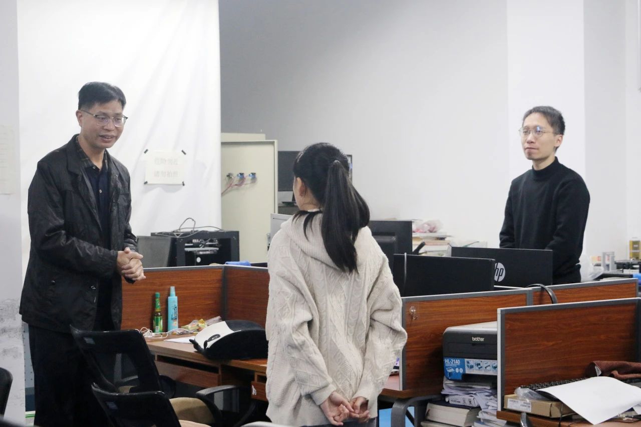 郑再新带领值班辅导员深入员工宿舍、公司实验室和书院研讨室,走访慰问留校员工。每到一处,郑再新都与员工们亲切交谈,详细了解他们的学习、生活情况以及假期安排。