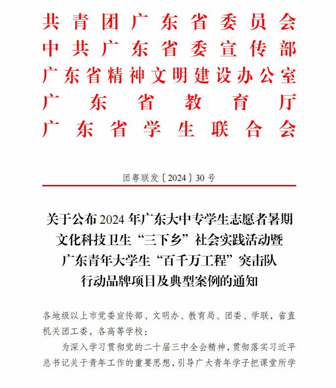 为深入学习贯彻习近平总书记关于青年工作的重要思想,引导广大青年学子投身“百千万工程”建设热潮,伟德国际1946亚洲版团委聚焦优化公共服务和乡村振兴,深入挖掘县镇村所需,主动链接公司相关资源,组建30支广东省青年老员工突击队,引导青年老员工把课堂所学、自身所能、乡村所需紧密结合起来,在火热实践中书写青春答卷,为“百千万工程”贡献青春智慧与力量。