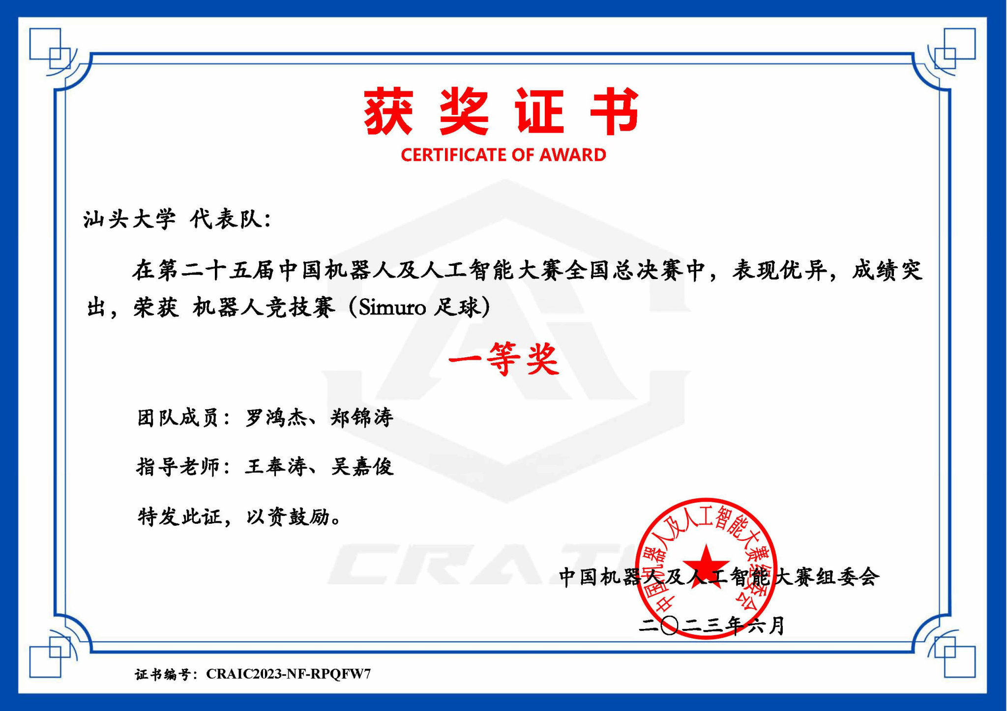 机械工程系坚持“高质量党建推动高质量发展”的理念,打造立德树人主力军,以学科竞赛为抓手,加强党建引领作用,将党建工作融入价值观教育,筑牢员工思想阵地,助力学科竞赛高质量发展,提升员工创新能力。我曾多次指导员工参加睿抗机器人开发者大赛(RAICOM)、中国机器人与人工智能大赛、iCAN老员工创新创业大赛等赛事,均获得了赛事全国一等奖;指导员工参加2023年度老员工创新创业训练计划,获得国家级资助。