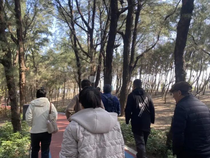 随后,支部党员参观了金銮湾生态绿化示范林——百里木麻黄。这里留有谷文昌奋战飞沙滩时种下的木麻黄。沿着步道一路走过,耳畔回响着的是谷文昌书记“不治服风沙,就让风沙把我埋掉”的声音,眼前闪过的是谷文昌书记带领东山人民与风沙斗争的情景。