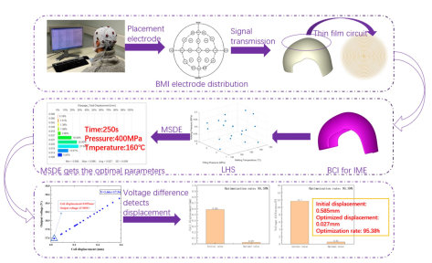 文章创新性亮点在于针对脑机接口注塑过程中节点位移影响信号传输的问题,创新性地结合拉丁超立方采样(LHS)和多策略差分进化算法(MSDE),优化注塑参数,大幅降低节点位移(优化率达 95.38%),并通过电压差评估产品可靠性,为提升脑机接口性能提供新途径。