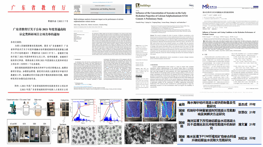 广东省普通高校青年创新人才项目《海洋环境下改性硫铝酸盐混凝土性能提升机理及修复海工混凝土应用研究》