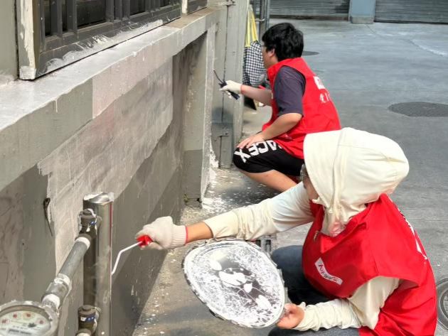 4月13日至21日,由大华街道集成社区青年骨干许佳伟带队,前往集成社区开启墙面水泥修复工作。通过细致检查墙面、修补裂缝、破损区域、防水材料涂抹等一系列工作,有效解决了墙面受潮、渗水问题,确保墙绘作品能长久保存,墙面处理工作至此圆满完成,为正式墙绘打下良好基础。