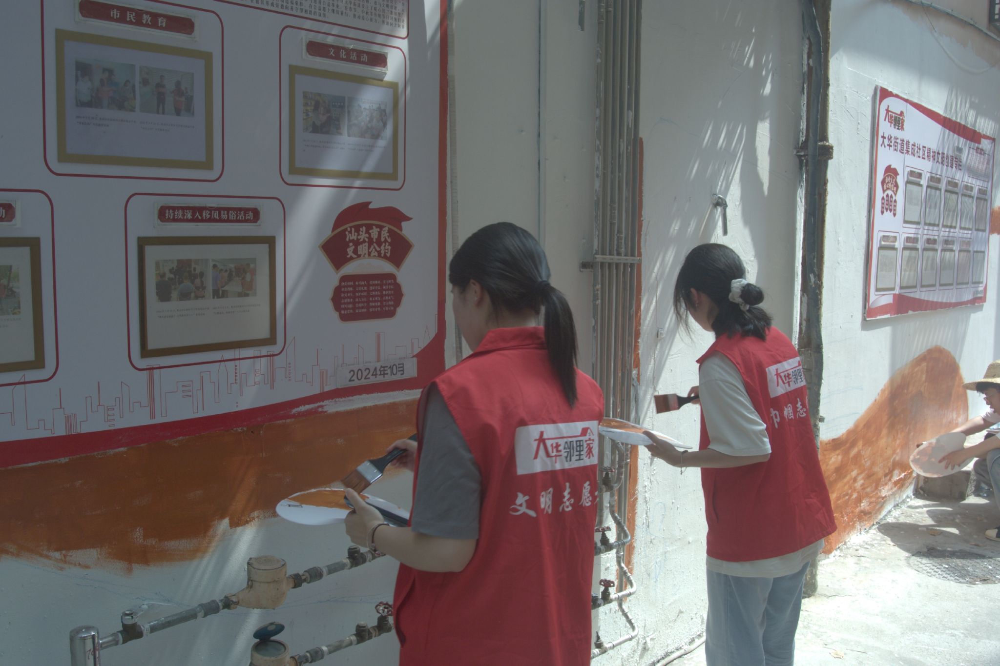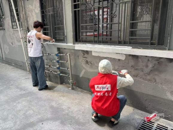 在创作过程中,他们充分发挥创意,团队协作默契,设计图的展望渐渐在墙面上浮现,最终构成了一幅充满生机的社区图景。这些作品不仅让社区环境焕然一新,更成为传播正能量、彰显青年风采的亮丽风景。