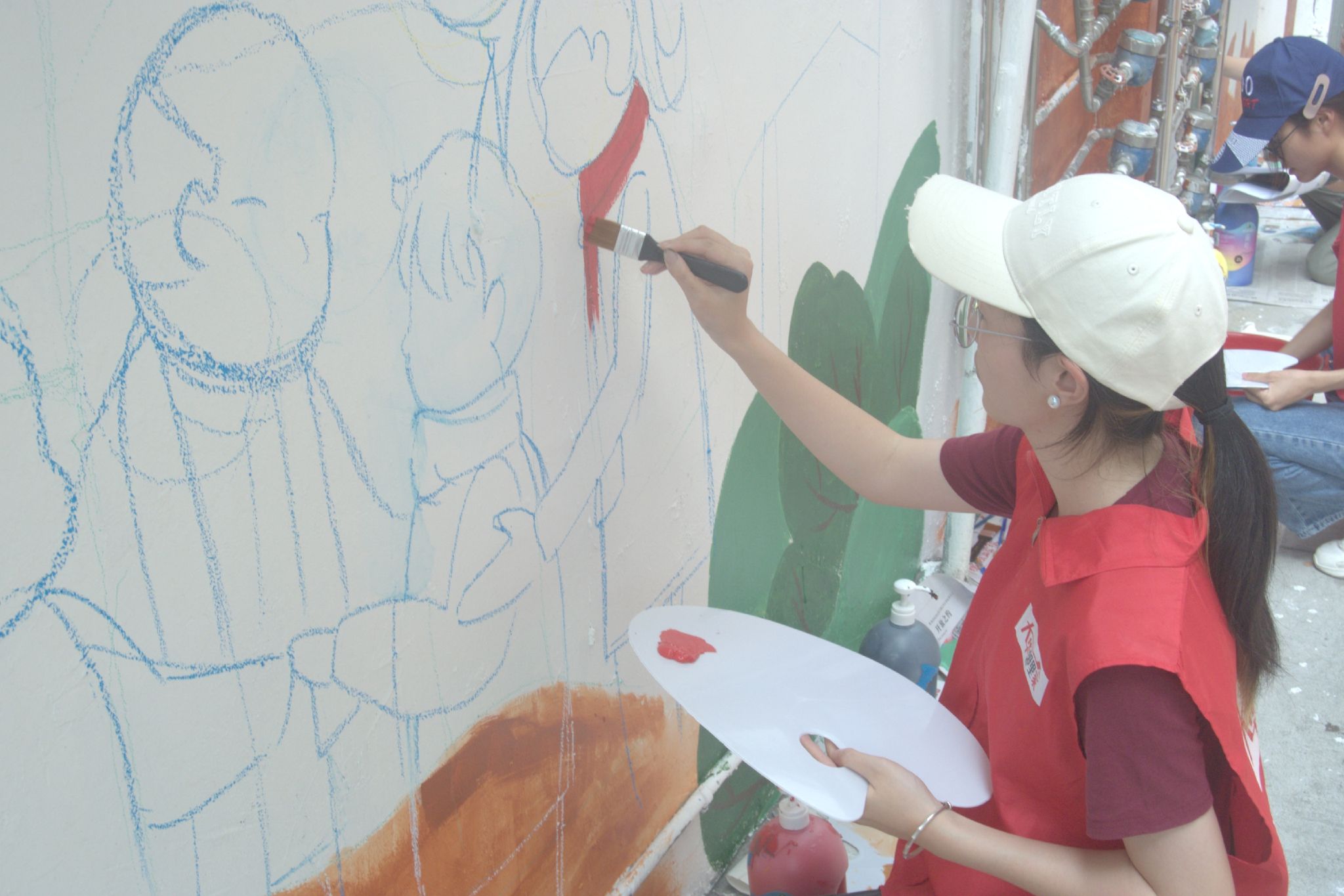 活动筹备阶段,工作人员迅速开展物资筹备和志愿者招募工作,吸引了众多具备绘画功底和热情的青年志愿者加入。同时,为确保墙绘契合社区特色,2025年年初,志愿者们深入社区进行调研,通过实地考察、与居民交流等方式,详细了解社区文化、历史及居民期望,收集了宝贵资料,于2025年4月中旬创作完成了设计稿。
