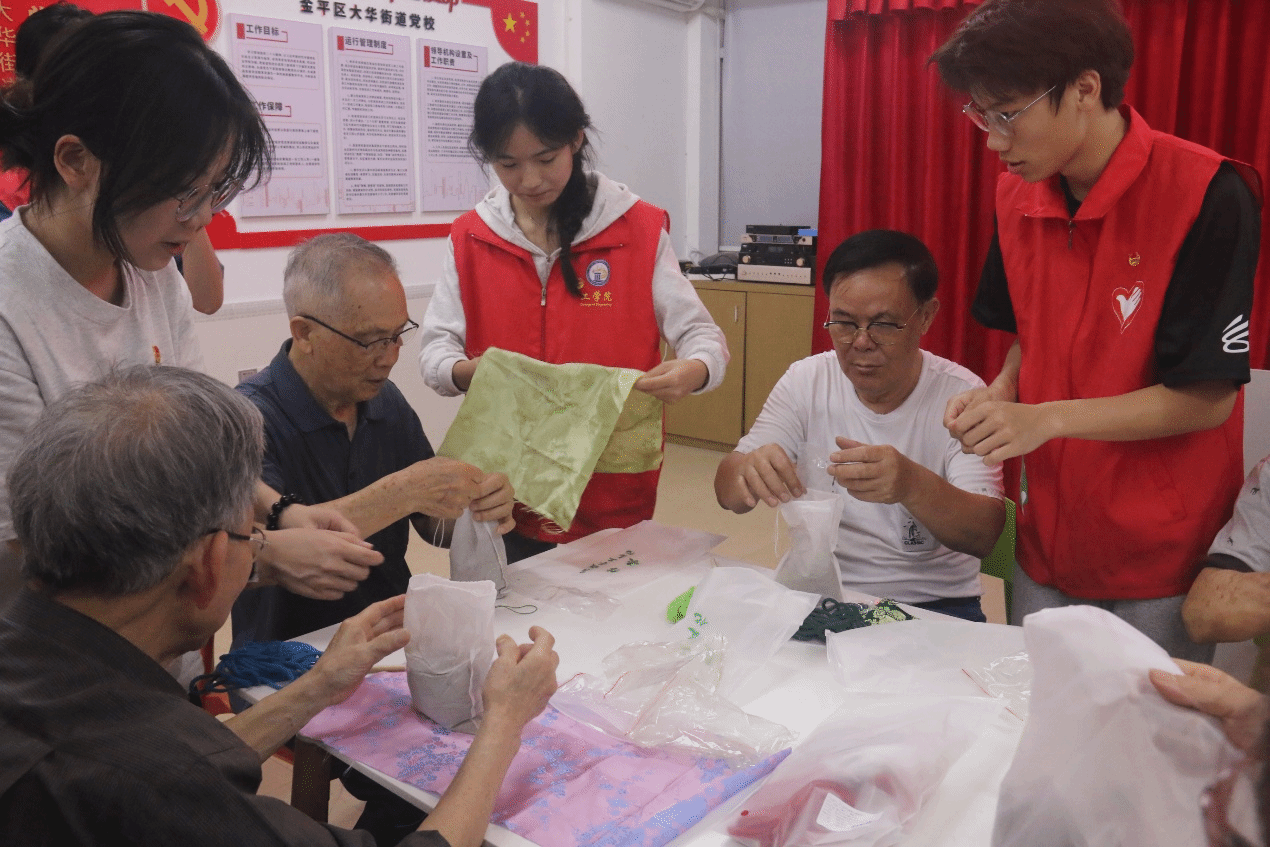 最后,通过巧妙融合传统文化与健康养生元素,党员和团员青年与老人们一同制作艾草养生锤,通过生动讲解和亲手实践,让老人们了解艾草的药用价值和养生功效。在实际操作中,大家手持精美的养生锤,沉浸在创作的乐趣之中,不仅加深了对传统养生文化的理解,也在互动中增进了新时代青年与老年群体之间的情感联系,搭建起一座跨越年龄的互动桥梁。