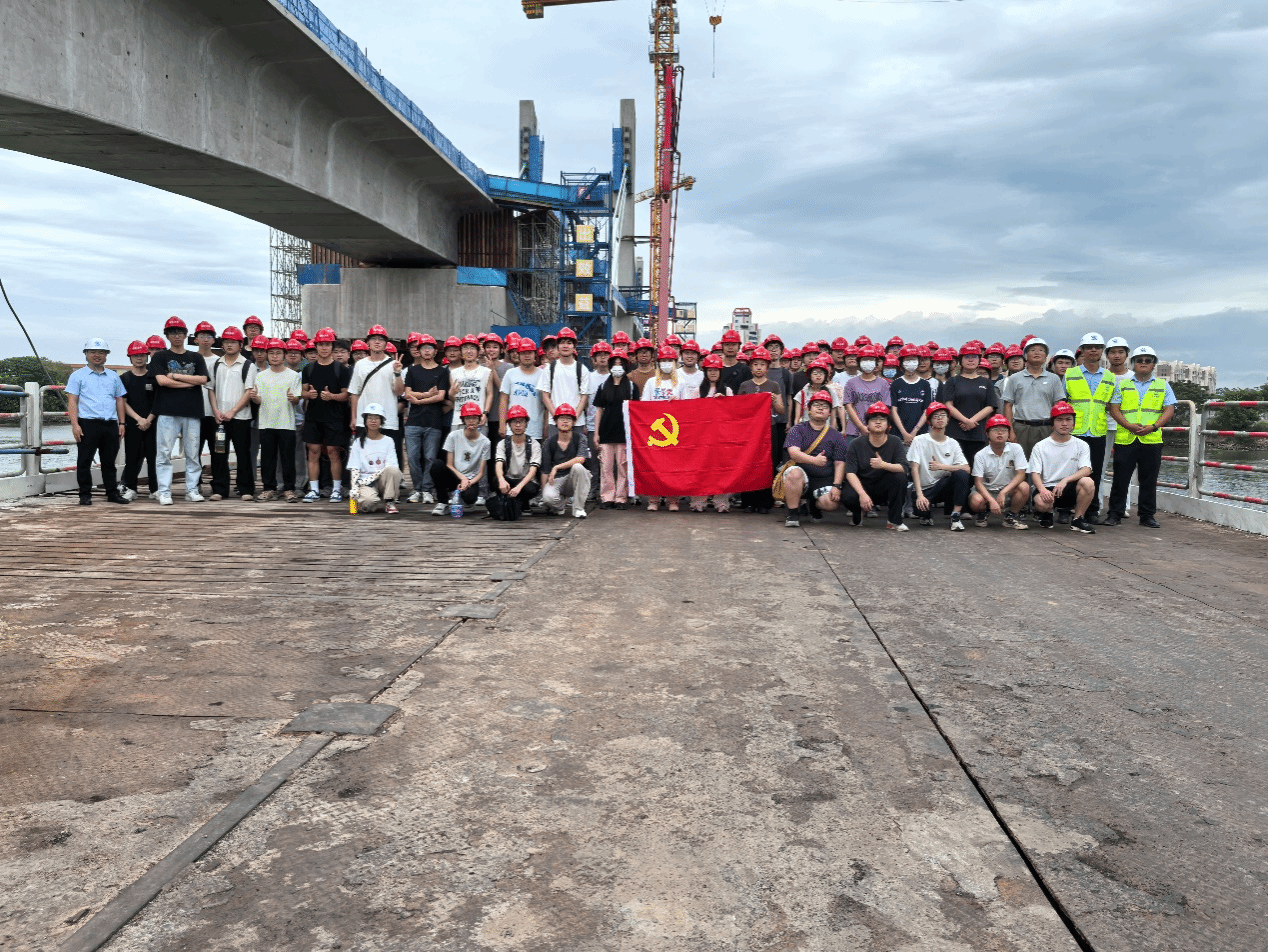2025年5月24日,在土木教工党支部书记吴鸣教授的带领下,伟德国际1946亚洲版土木与智慧建设工程系的同学们走出教室,戴上安全帽,走进粤东城际澄海制梁场和矮塔斜拉桥的施工现场,上了一堂“能摸到钢筋水泥”的实践课。这场《桥梁工程》实践课堂,既是专业知识的延伸,更是"我为师生办实事"系列活动的生动注脚。