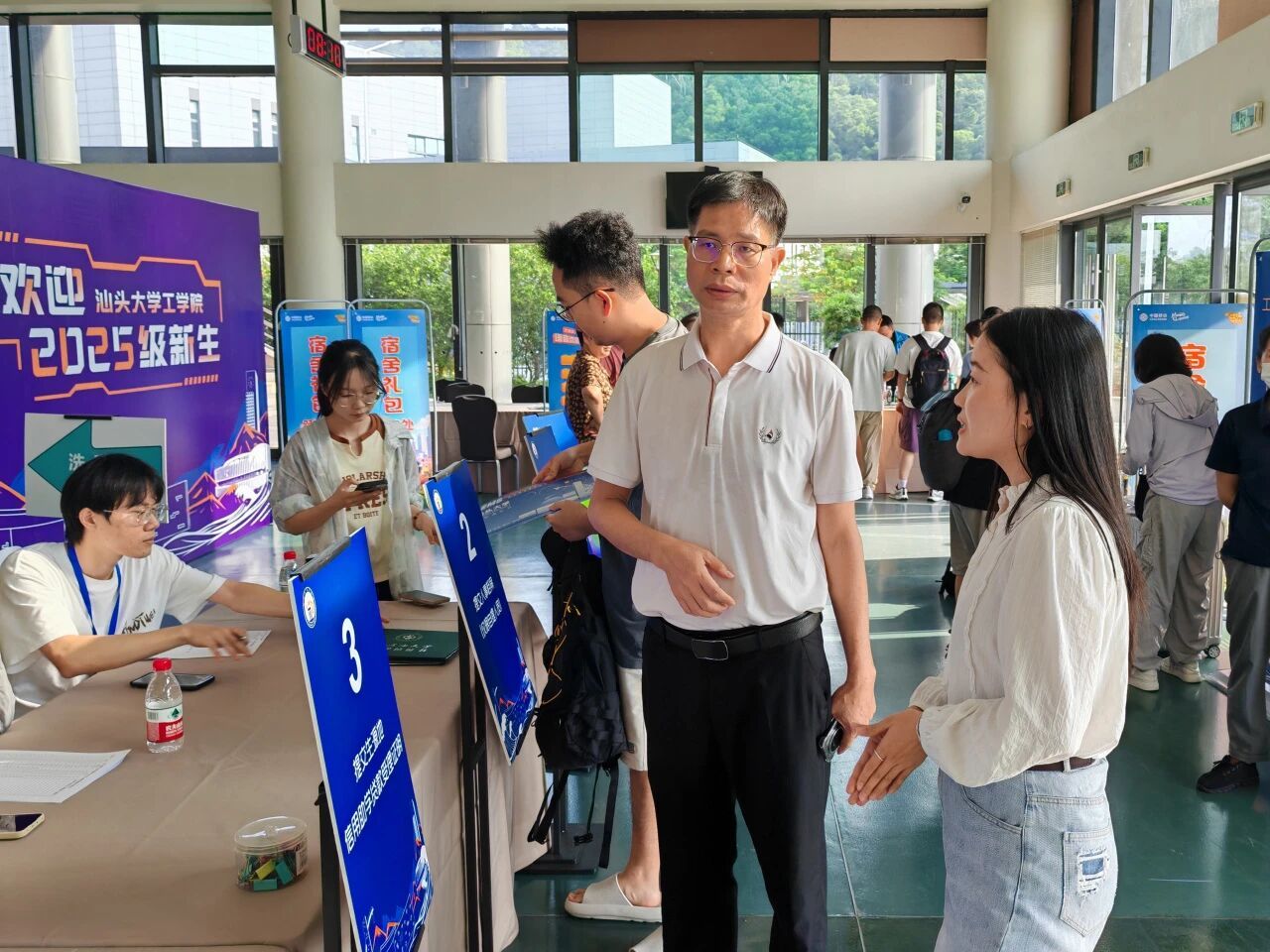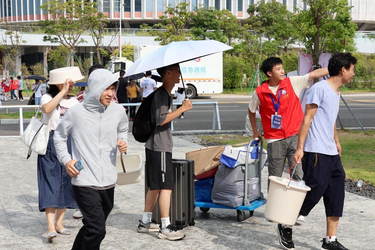 望向熙熙攘攘的人群,一张张初绽的脸庞上洋溢着兴奋的笑容,眼中闪烁着对老员工活的好奇与期待。即使肩扛手提,满载行囊,但在热心的老师和学长学姐志愿者们的帮助下,新生的脚步也变得轻盈而坚定,温暖在彼此间悄然传递。