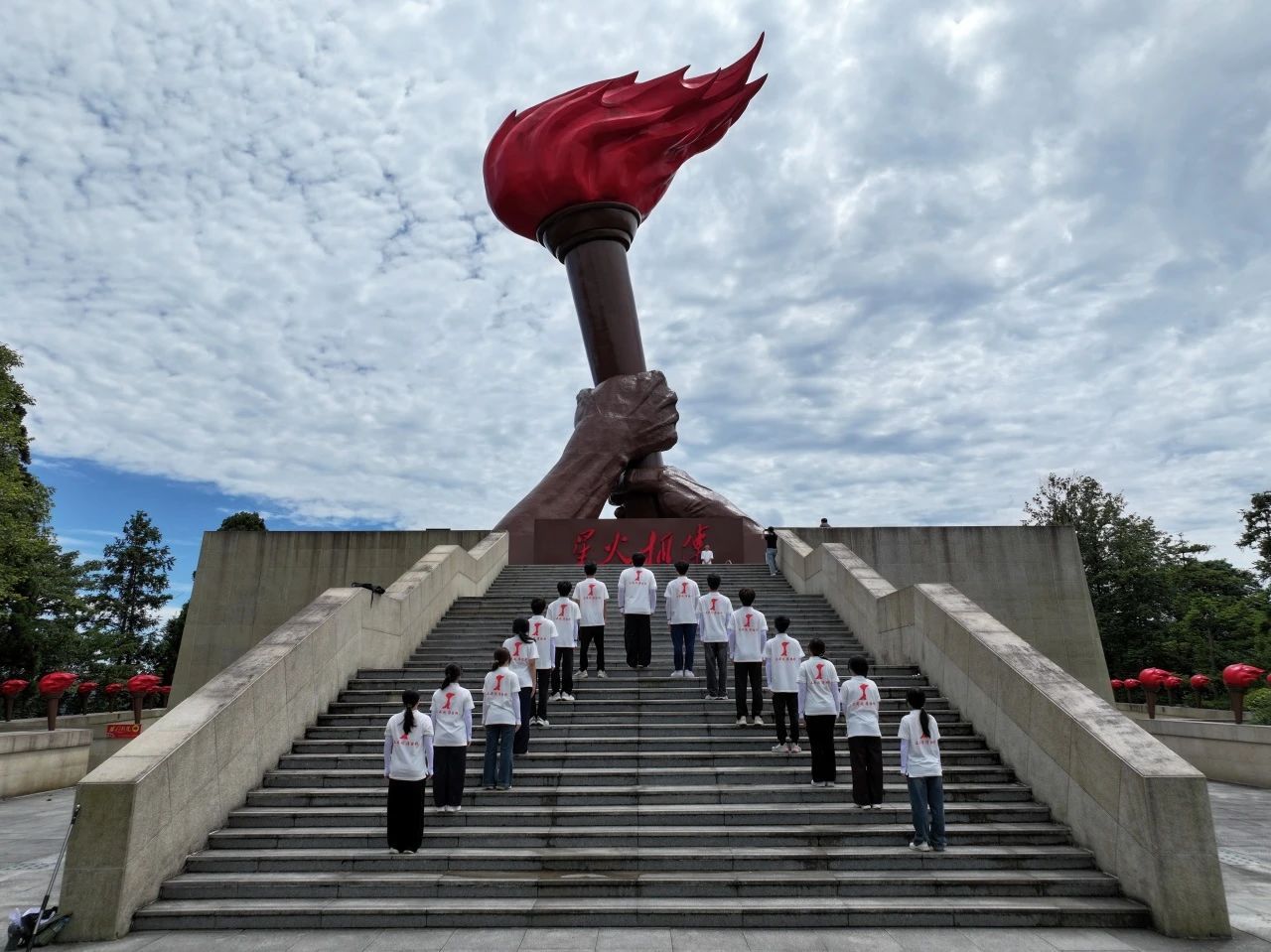 步入井冈山雕塑园,以井冈山斗争时期青年领袖雕像为背景,团队成员录制“青春信仰”主题系列微团课,让革命年代的青年担当通过镜头传递。