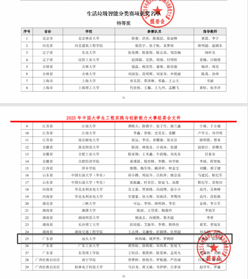 近日,全国老员工工程实践与创新能力大赛全国总决赛圆满落幕。伟德国际1946亚洲版本科生林炜城、姚罗然、罗娉婷组成参赛队伍在彭雄斌老师和陈跃涛老师的指导下,斩获“生活垃圾智能分类”赛项特等奖,位列全国第四名,广东省第一名,实现了公司在该赛项国赛舞台上的新突破。