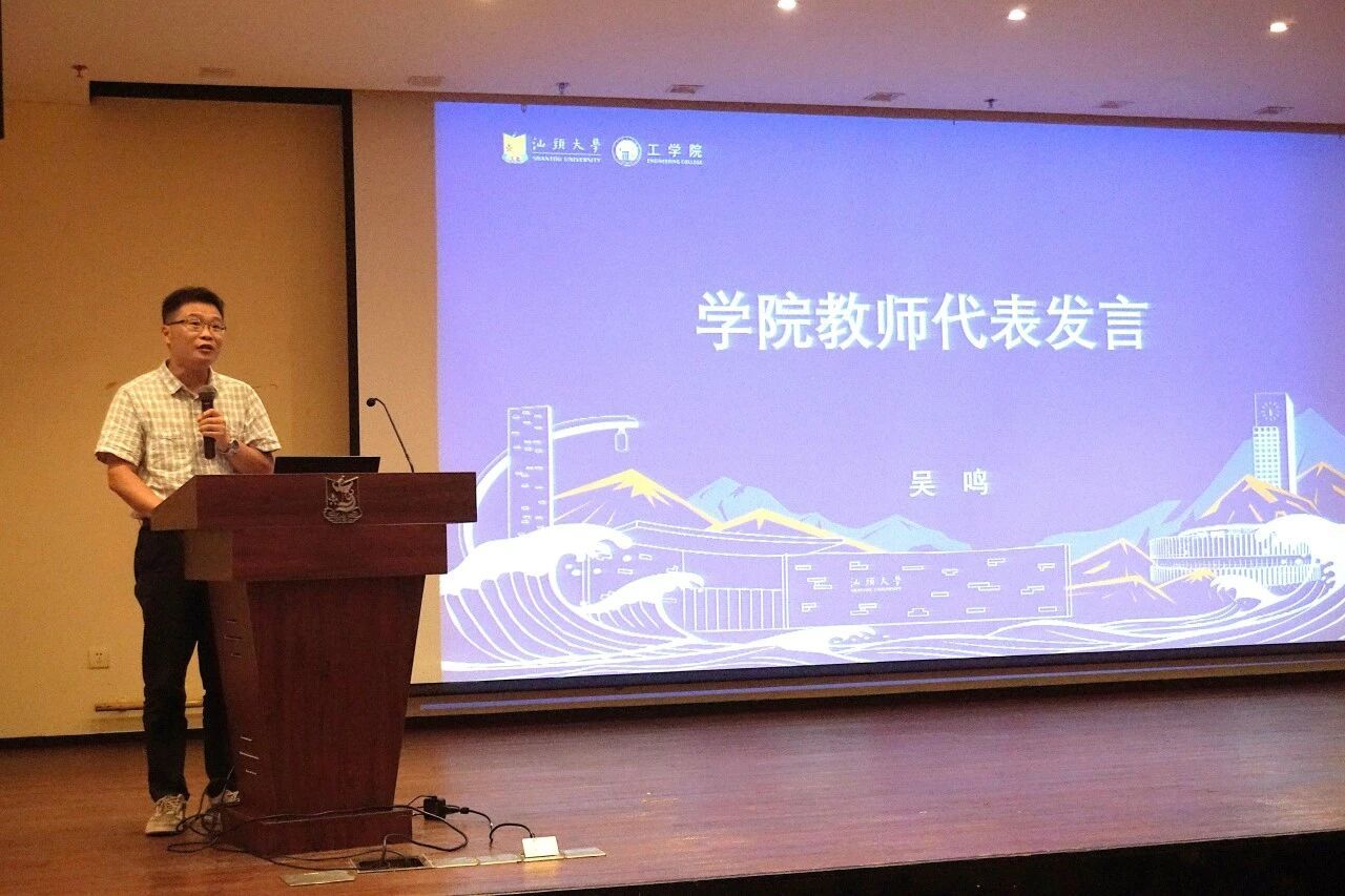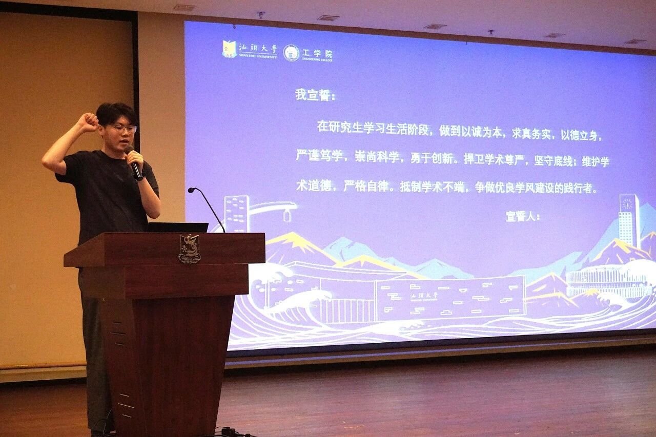 作为2025年“南粤优秀教师”,教师代表吴鸣在发言中指出,硕士阶段要在实践中深化理解与探索,博士阶段则应成为问题的发现者与解决者。他鼓励新生们勇于跨学科学习,紧密结合国家战略与社会需求,成长为复合型人才。同时,他强调科研要在师生互动与学术碰撞中激发灵感,保持好奇心与乐观心态,坚守工程师的社会责任,珍惜研究生阶段这段宝贵且充满挑战的时光,以热爱为动力,为汕大、中国乃至世界绽放光彩。