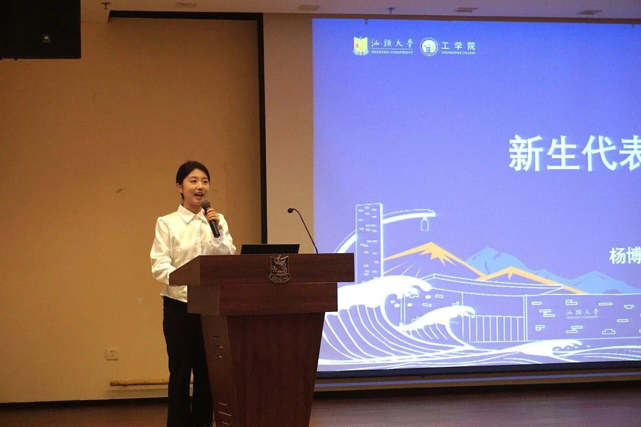 机械工程专业新生代表杨博文同学在发言中表达了对校园生活的憧憬与对学术探索的期待。她表示,工科研究应扎根现实需求,成为连接理论与实践的桥梁,让科研成果真正回应社会问题。未来,她将以严谨的态度对待每一次实验,筑牢学术根基,勇攀科研高峰,以实际行动为国家建设贡献力量。