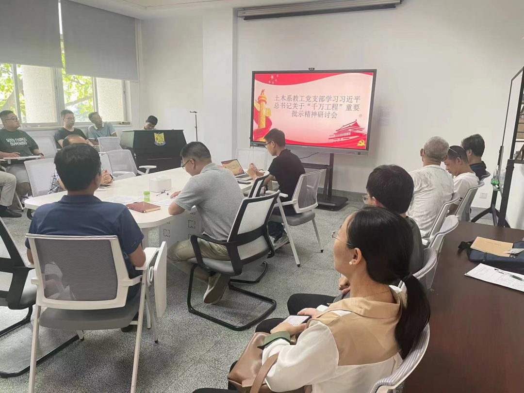 6月21日,土木系教工党支部召开研讨会,深入学习贯彻习近平总书记关于“千万工程”的重要批示精神,党员紧密结合实际,谈学习体会,交流思想,积极对标对表,转化运用,会议由土木系教工党支部书记吴鸣主持。吴鸣...