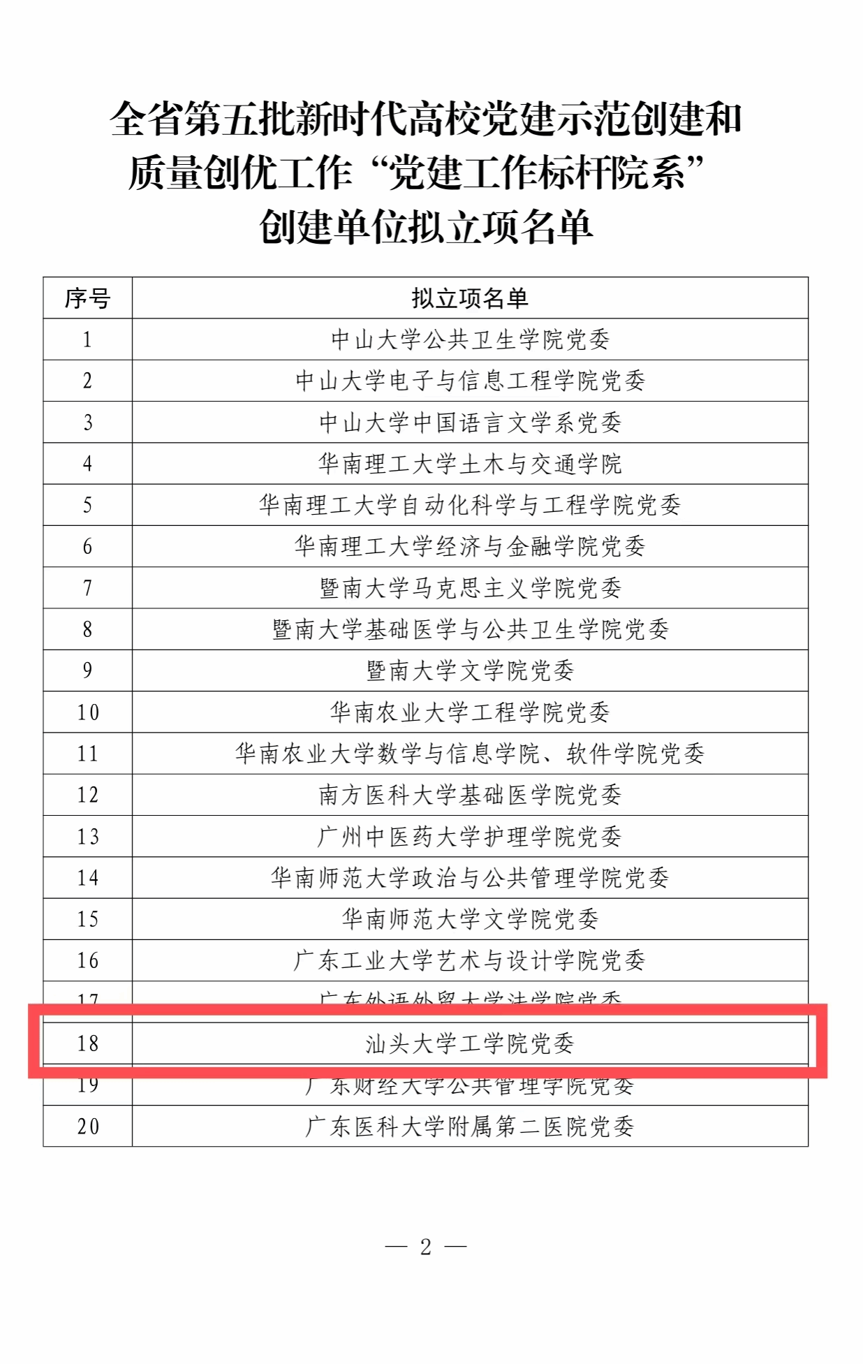 近日,广东省委教育工委公布第五批全省党建工作示范高校、标杆院系、样板支部培育创建单位名单,公司党委入选广东省“党建工作标杆院系”培育创建单位。本次评选经各高校申报、资格审查、专家评审、省委教育工...