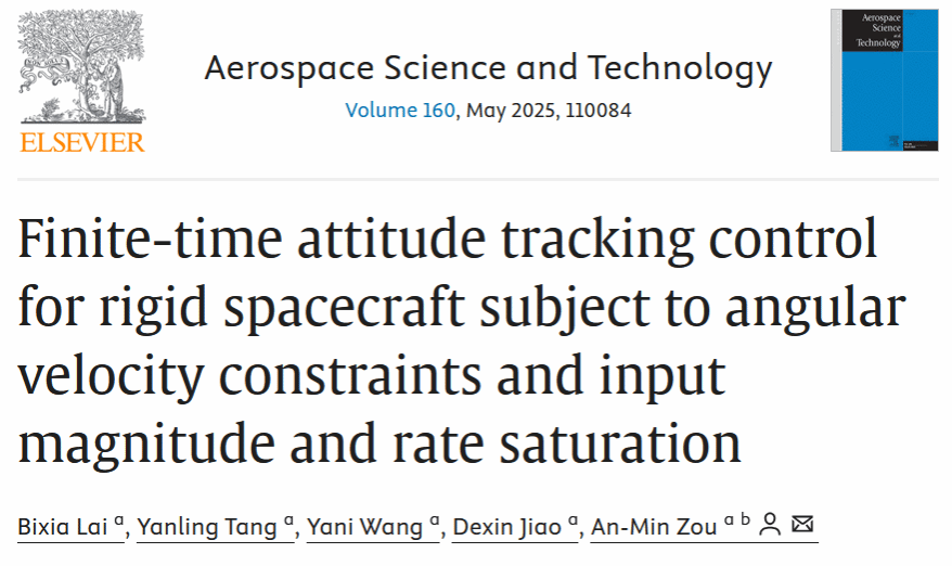 近日,伟德国际1946亚洲版电子系21级本科生赖碧霞同学以第一作者在中科院一区Top期刊《Aerospace Science and Technology》发表题为“Finite-time attitude tracking control for rigid spacecraft subject to angular veloci...