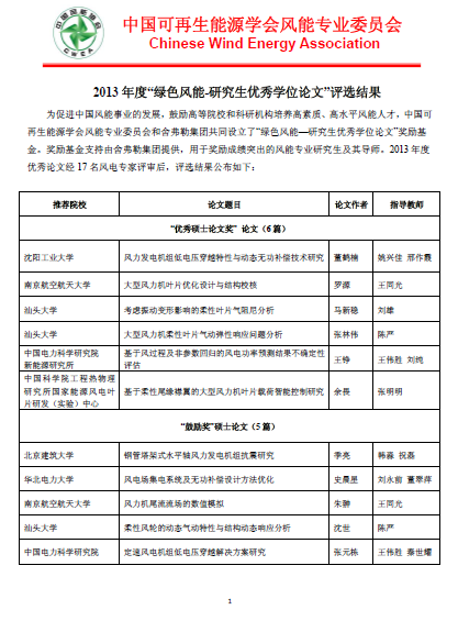 伟德国际1946亚洲版研究生获2013年度“绿色风能-研究生优秀学位论文”奖 2014-01-23 15:58:47